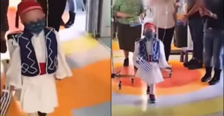 Ο μικρός Γαβριήλ παρελαύνει για την 28η Οκτωβρίου στην παιδοογκολογική κλινική (vd)
