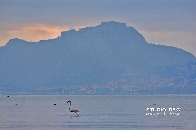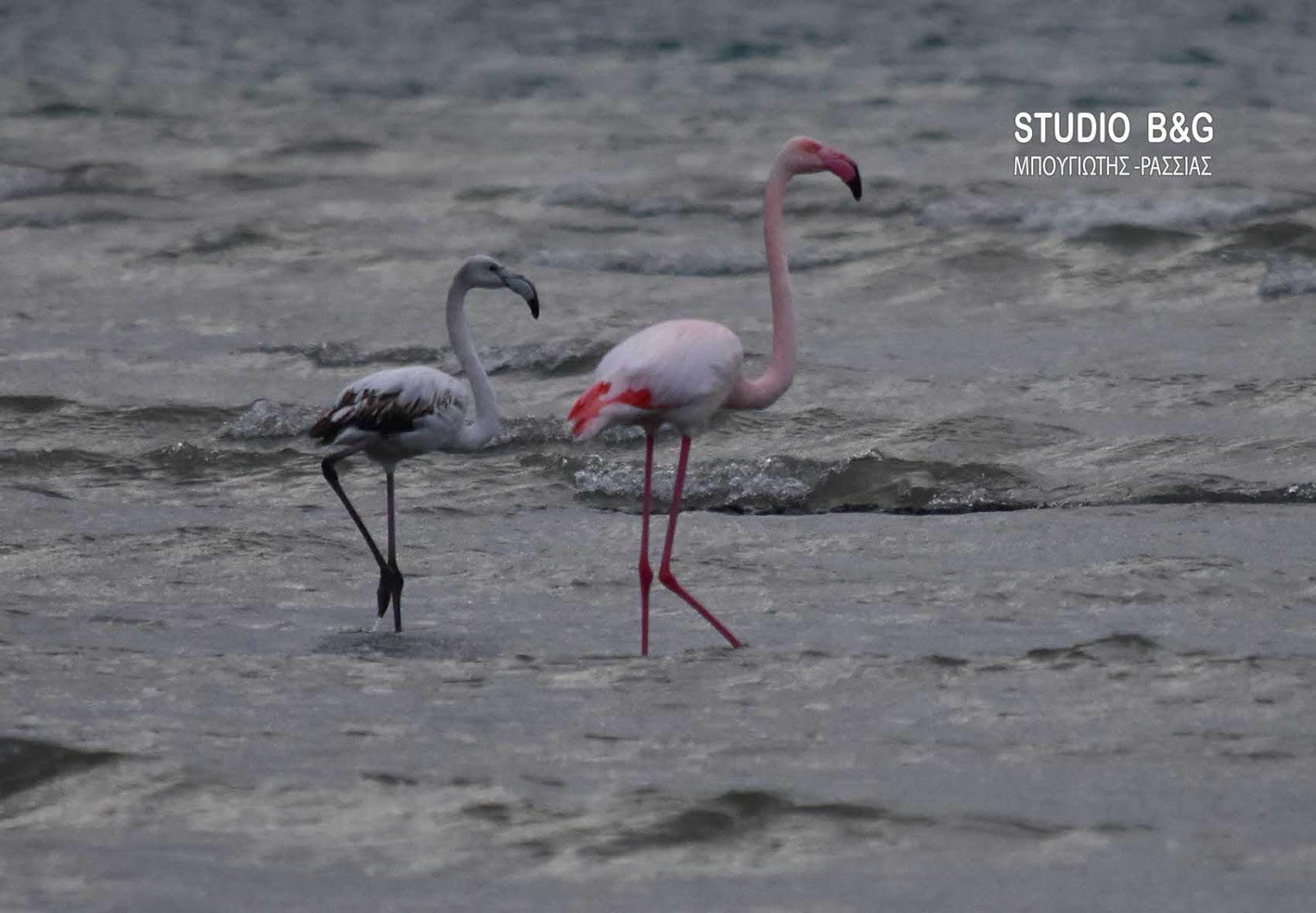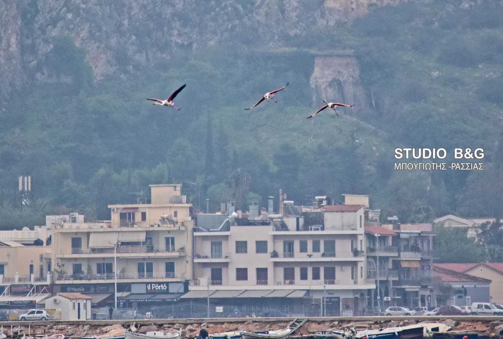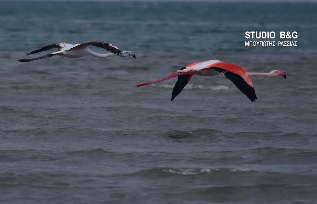 Τα πανέμορφα Φλαμίνγκο, διανύουν χιλιόμετρα πετώντας από την μακρινή Αφρική μεταναστεύοντας κατά τους Φθινοπωρινούς μήνες στη Μέση Ανατολή και σε άλλες Αραβικές χώρες και σταματούν στον υδροβιότοπο του Ναυπλίου για να ξεκουραστούν.