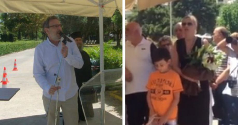 Λίγο πριν γίνουν τα αποκαλυπτήρια μνημείου που φιλοτέχνησε αφιλοκερδώς ο γλύπτης Κυριάκος Ρόκος ξεκίνησαν οι ομιλίες. Ένταση υπήρξε όταν κατά τη διάρκεια του χαιρετισμού του γενικού γραμματέα ενημέρωσης και επικοινωνίας Λευτέρη Κρέτσου και του προέδρου της ΕΡΤ Διονύση Τσακνή, αποχώρησαν διαμαρτυρόμενοι ο Παναγιώτης Λαφαζάνης και ο Δημήτρης Στρατούλης από τη ΛΑΕ. Πρωταγωνίστρια των επεισοδίων ήταν όμως η Ραχήλ Μακρή η οποία φώναζε συνεχώς και τελικά εξόργισε τον Διονύση Τσακνή.