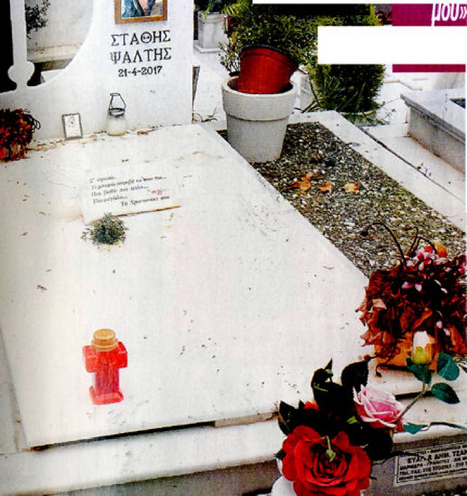 Ο φωτογραφικός φακός του «Χάι» βρέθηκε στο νεκροταφείο Ζωγράφου, προκειμένου να διαπιστώσει ποια είναι η κατάσταση που επικρατεί στον τάφο του αείμνηστου ηθοποιού. Το πρώτο πράγμα που κοιτά κανείς φτάνοντας εκεί είναι η φωτογραφία του πρωταγωνιστή, όπου πάνω της είχε γράψει ο ίδιος: «Με αγάπη Στάθης Ψάλτης» και η οποία προκαλεί ρίγη συγκίνησης.