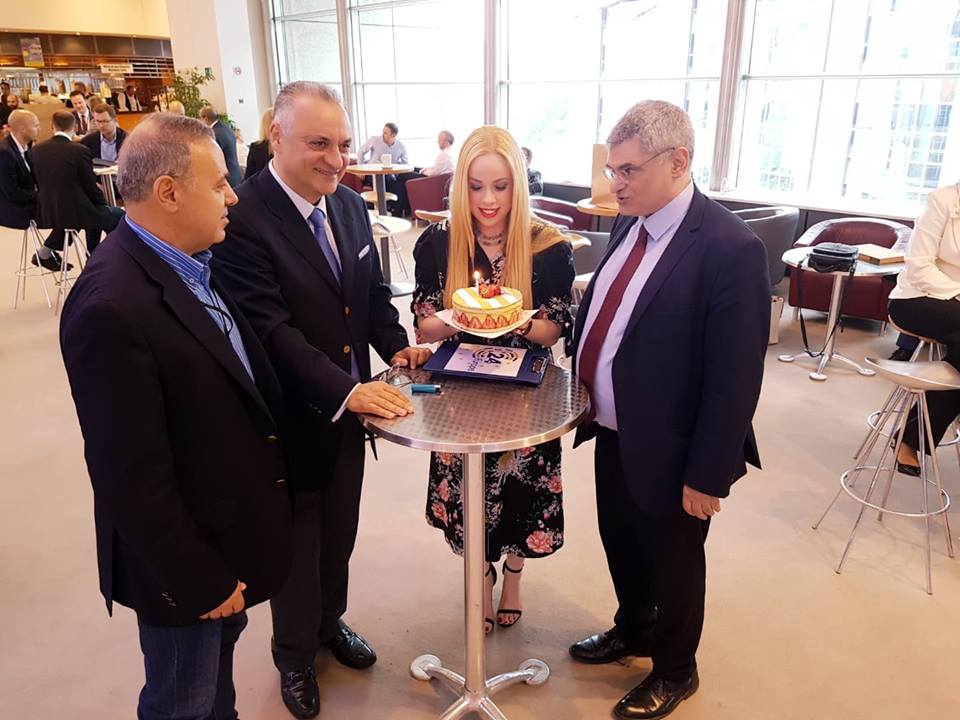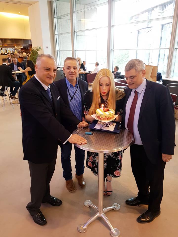 Ένα ευχάριστο διάλειμμα είχαν σήμερα στο Ευρωπαϊκό Κοινοβούλιο στις Βρυξέλλες ο νεότερος αντιπρόεδρος του Ευρωπαϊκού Κοινοβουλίου Fabio Massimo Castaldo και οι Έλληνες ευρωβουλευτές Μανώλης Κεφαλογιάννης,Μίλτος Κύρκος και Κώστας Μαυρίδης καθώς έσβησαν το κεράκι στην τούρτα γενεθλίων της δημοσιογράφου