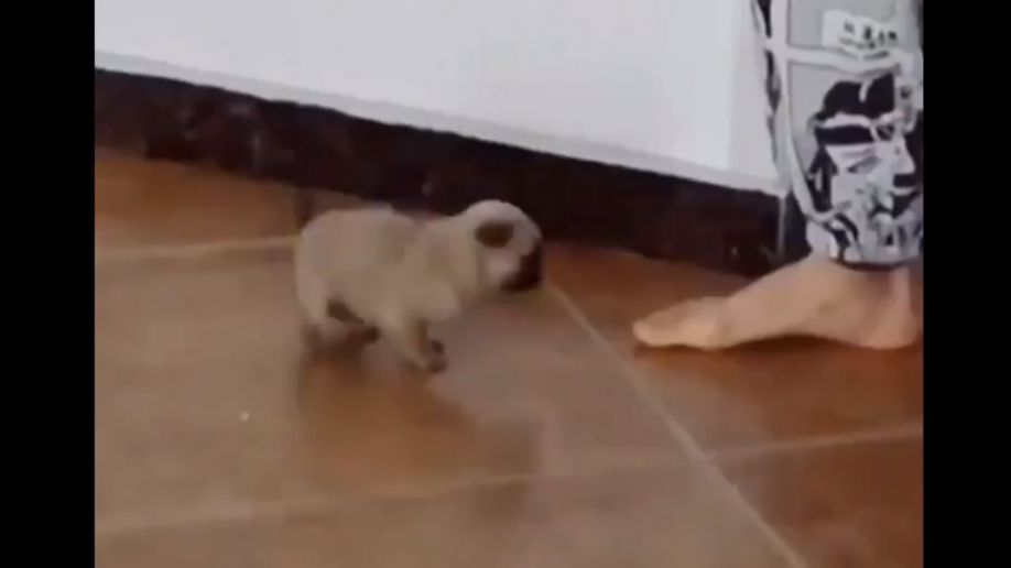 Ο νεαρός άντρας επιδίδεται σε διάφορα χορευτικά και ζητά από το κουταβάκι να τον μιμηθεί. Πράγμα που το σκυλάκι το κάνει με πολύ μεγάλη επιτυχία.
