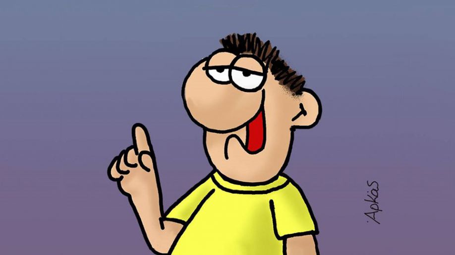 Το σκίτσο, αν και δεν αναφέρεται στα «παιδικά χρόνια ενός πρωθυπουργού», παραπέμπει ουσιαστικά στον Αλέξη Τσίπρα και στα γλωσσικά του... ατοπήματα.