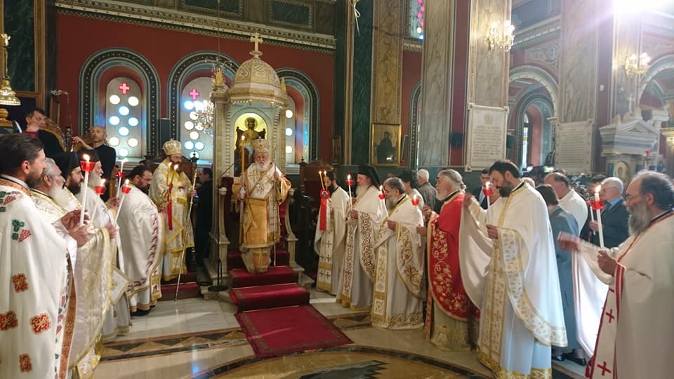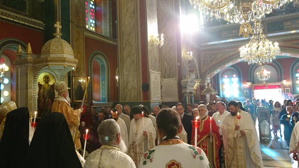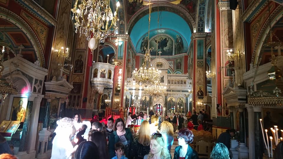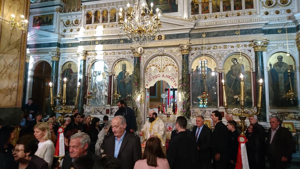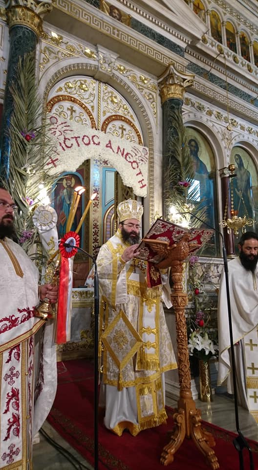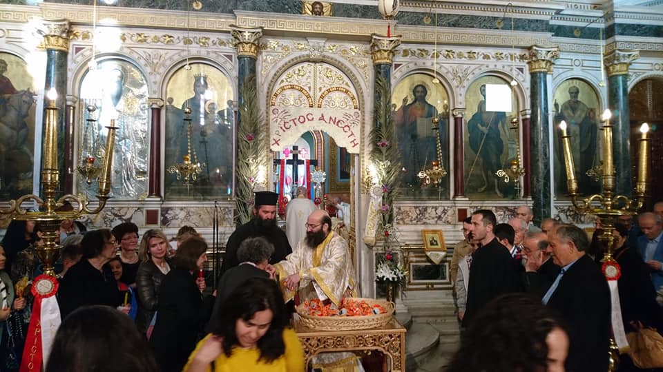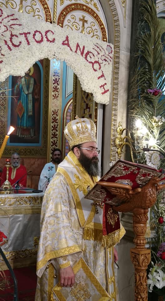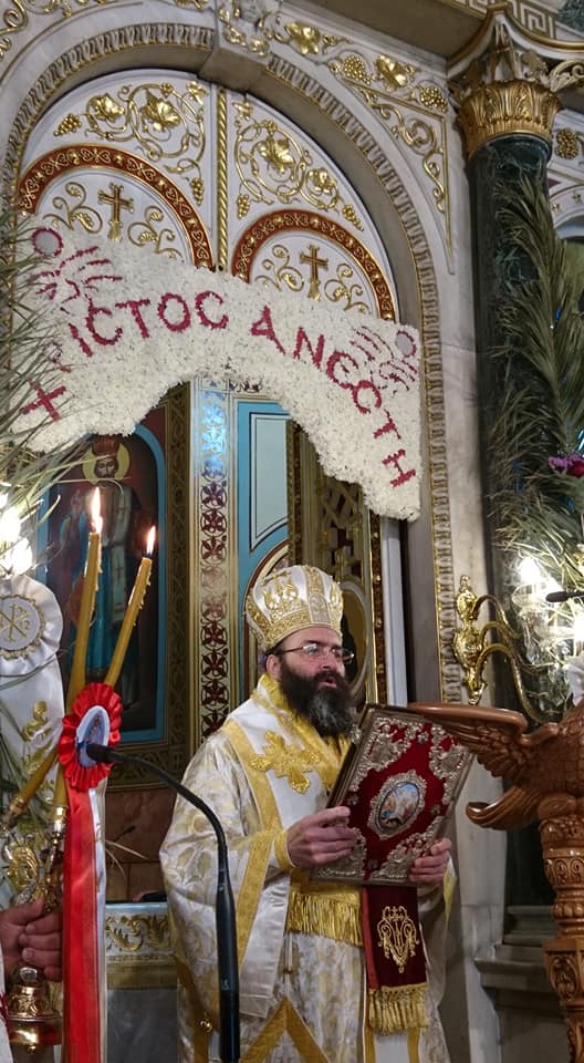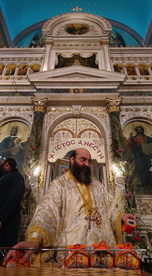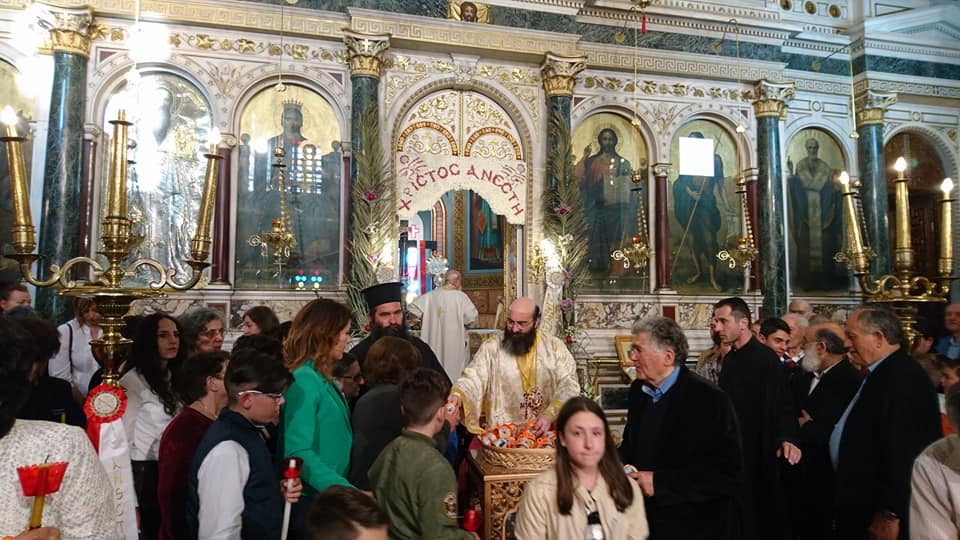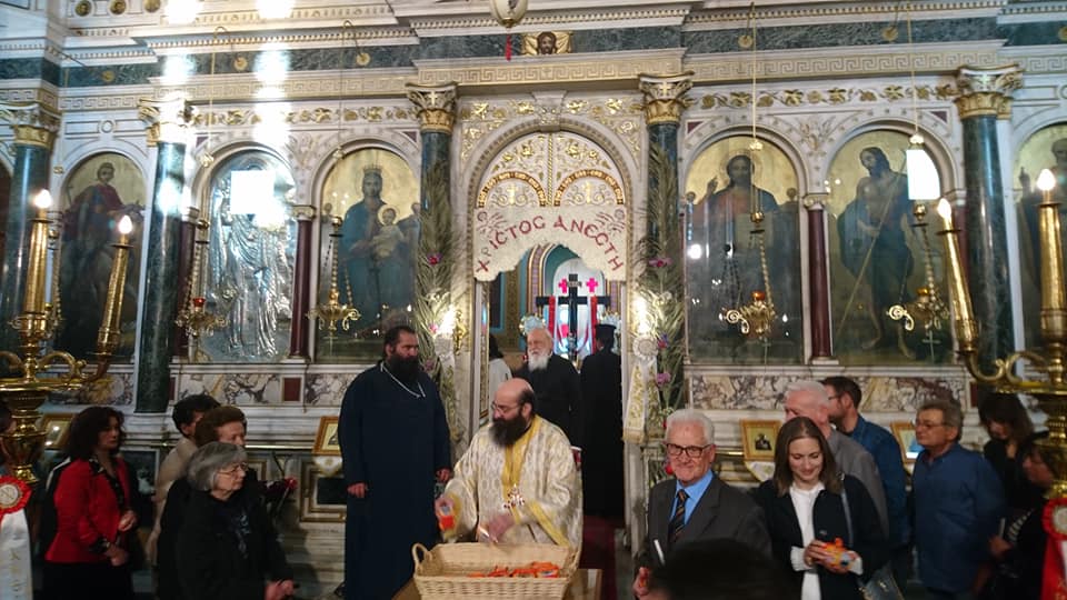 Τὸ ἑσπέρας τῆς Κυριακῆς τοῦ Ἁγίου Πάσχα 28 Ἀπριλίου 2019, ὁ Σεβασμιώτατος Μητροπολίτης Μαντινείας καὶ Κυνουρίας κ.κ. ΑΛΕΞΑΝΔΡΟΣ, τέλεσε τὴν Ἀκολουθία τοῦ Ἐσπερινοῦ τῆς Ἀγάπης εἰς τὸν Μητροπολιτικὸν Ἱερὸν Ναὸν τοῦ Ἁγίου Βασιλείου Τριπόλεως, συνεπικουρούμενος ὑπό τοῦ Βοηθοῦ Ἐπισκόπου του, Θεοφιλεστάτου Τεγέας κ.κ. ΘΕΟΚΛΗΤΟΥ καὶ Κληρικοὺς τῆς Μητροπόλεως μας μὲ τὴν παρουσία Πιστῶν, μὲ τοὺς ὁποίους καὶ ἀντάλλαξε ἀναστάσιμες εὐχὲς καὶ προσέφερε εἰς ἔνα ἕκαστον πασχαλινὸ αὐγὸ ὡς εὐλογία καὶ σύμβολο τῆς Ἀναστάσεως.