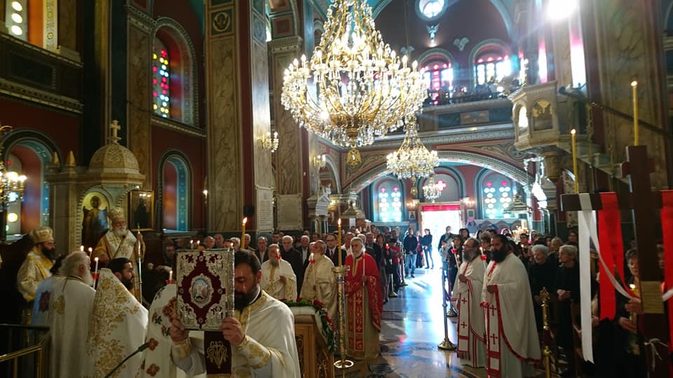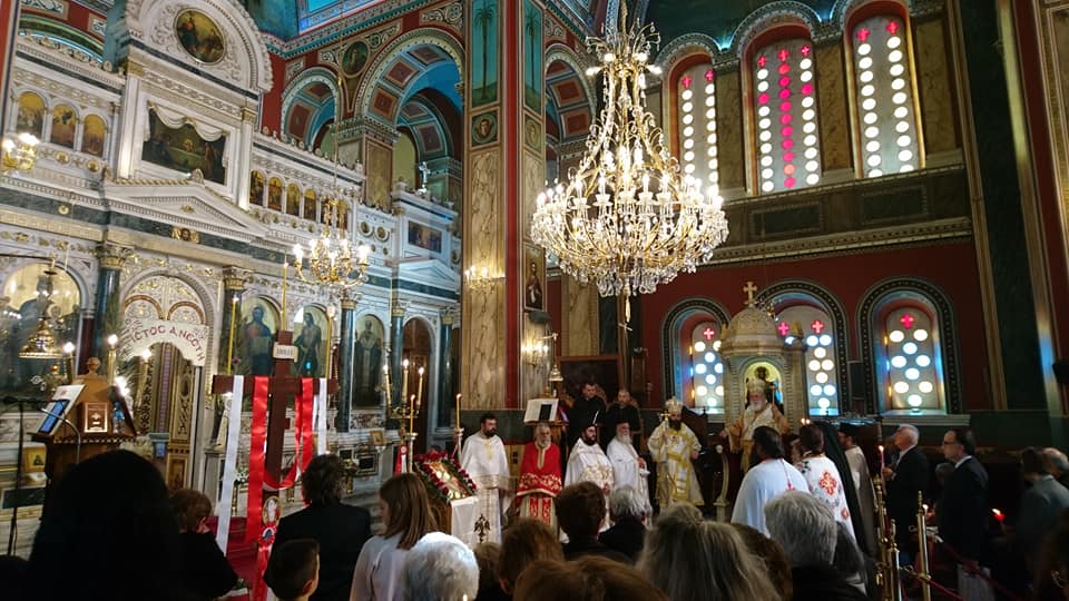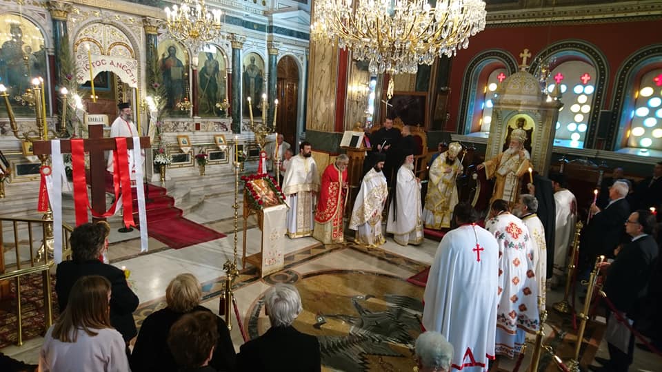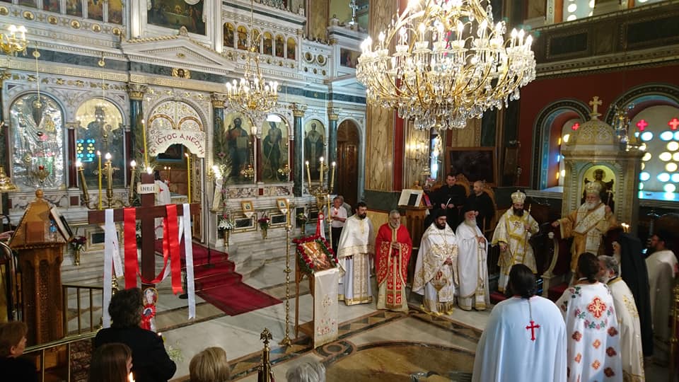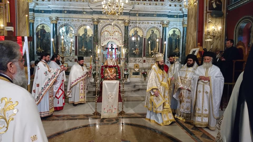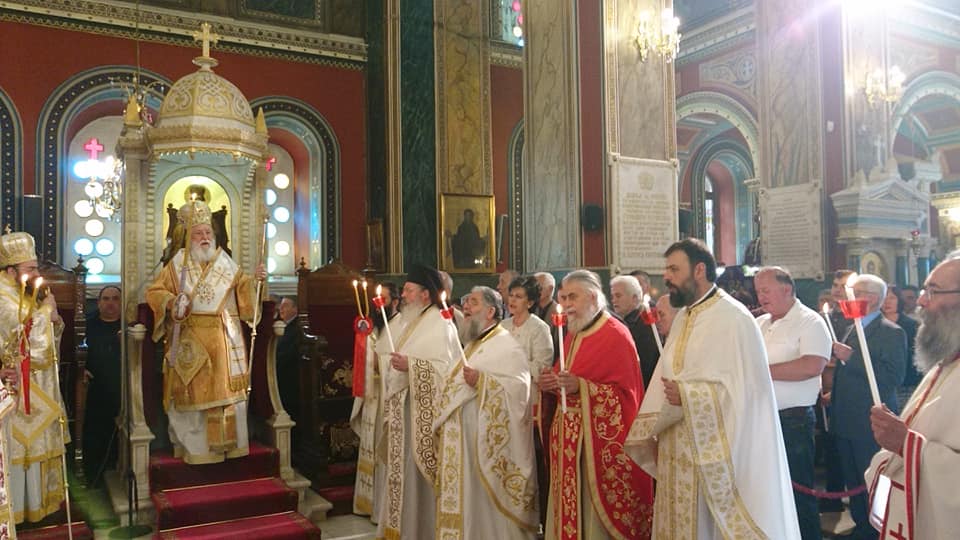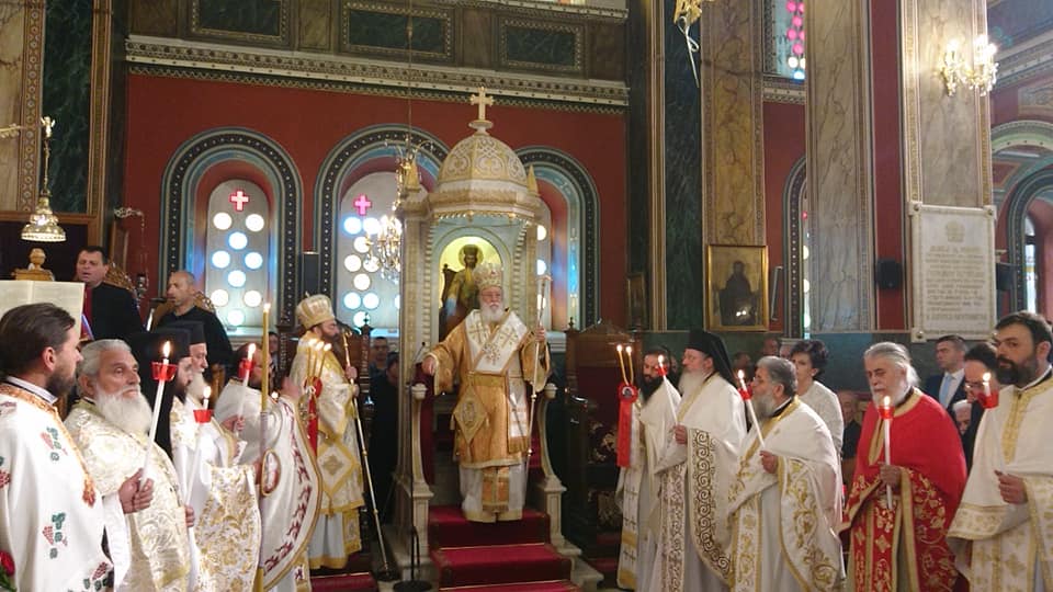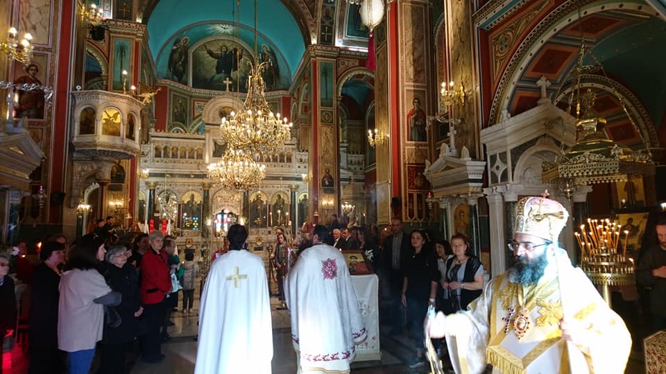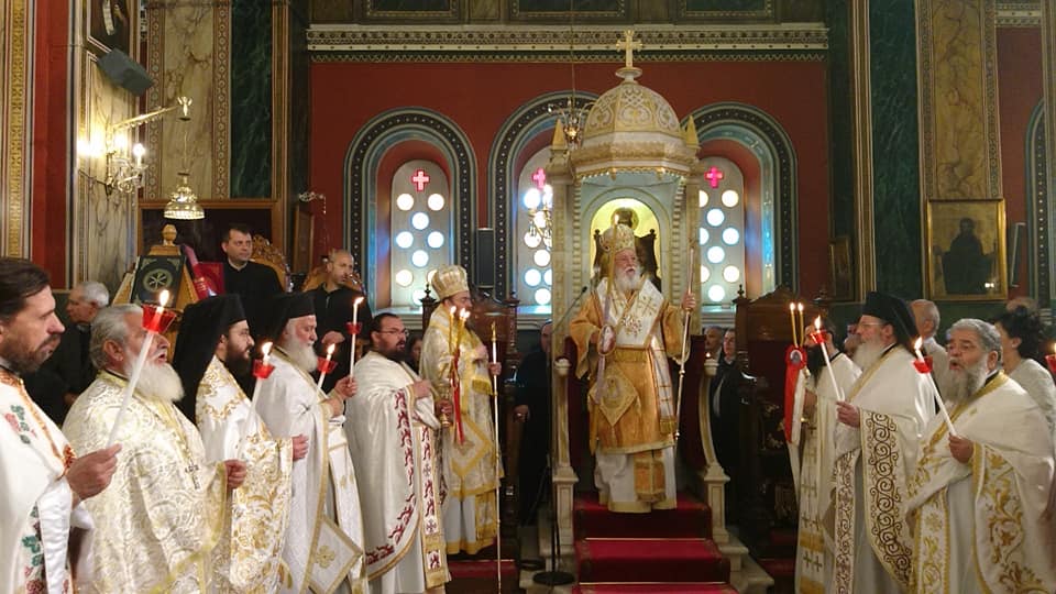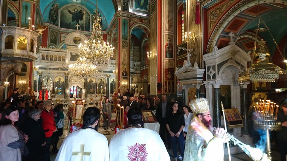 Τὸ ἑσπέρας τῆς Κυριακῆς τοῦ Ἁγίου Πάσχα 28 Ἀπριλίου 2019, ὁ Σεβασμιώτατος Μητροπολίτης Μαντινείας καὶ Κυνουρίας κ.κ. ΑΛΕΞΑΝΔΡΟΣ, τέλεσε τὴν Ἀκολουθία τοῦ Ἐσπερινοῦ τῆς Ἀγάπης εἰς τὸν Μητροπολιτικὸν Ἱερὸν Ναὸν τοῦ Ἁγίου Βασιλείου Τριπόλεως, συνεπικουρούμενος ὑπό τοῦ Βοηθοῦ Ἐπισκόπου του, Θεοφιλεστάτου Τεγέας κ.κ. ΘΕΟΚΛΗΤΟΥ καὶ Κληρικοὺς τῆς Μητροπόλεως μας μὲ τὴν παρουσία Πιστῶν, μὲ τοὺς ὁποίους καὶ ἀντάλλαξε ἀναστάσιμες εὐχὲς καὶ προσέφερε εἰς ἔνα ἕκαστον πασχαλινὸ αὐγὸ ὡς εὐλογία καὶ σύμβολο τῆς Ἀναστάσεως.