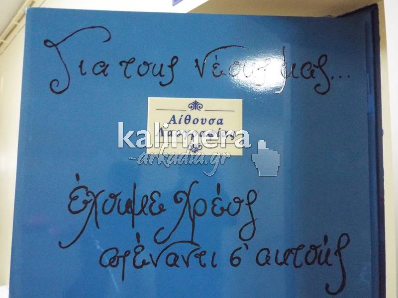 Αξίζει να σημειωθεί πως την υπέροχη -εικαστικά- εξώπορτα της Αίθουσας επιμελήθηκε η μαθήτρια Πένυ Σωτηροπούλου.
