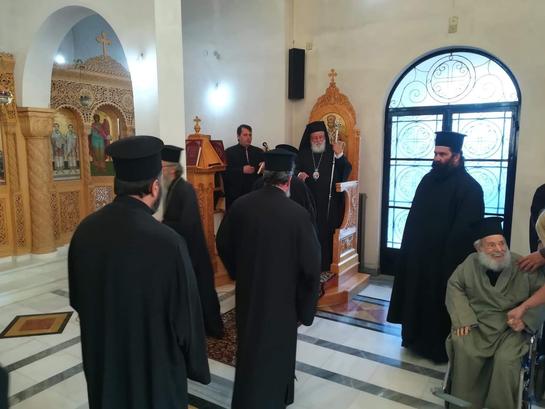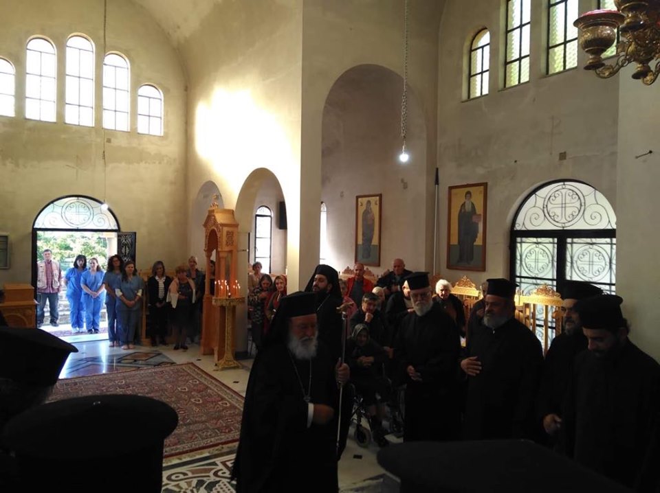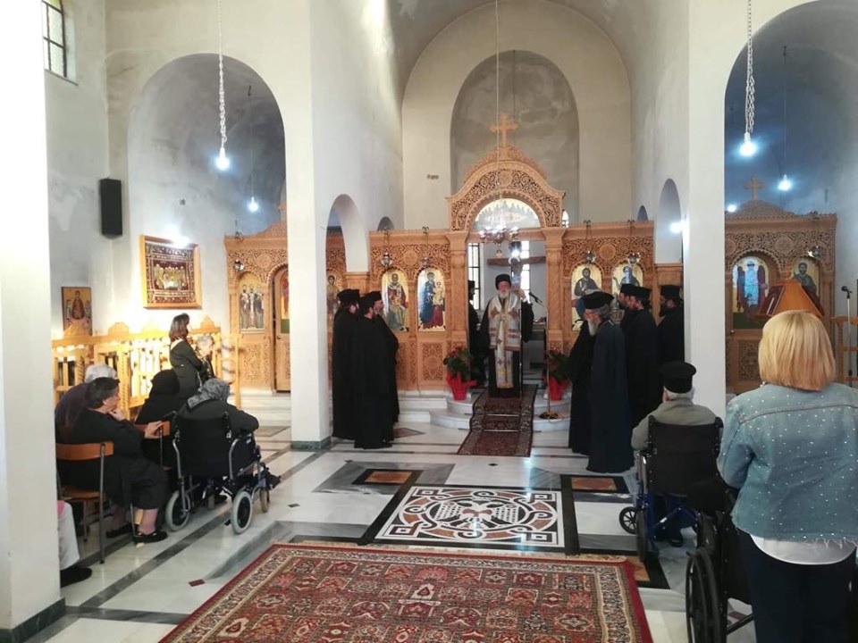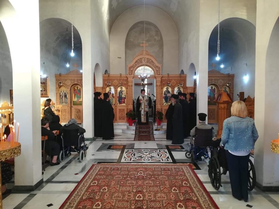 Τόν Σεβασμιώτατο πλαισίωσαν ὁ Σεβασμιώτατος Μητροπολίτης Νεαπόλεως καί Σαμαρείας( Πατριαρχεῖου Ἱεροσολύμων) κ. Ἀμβρόσιος, τρόφιμος τοῦ ἰδρύματος, καί πλῆθος ἱερέων. Ἐκκλησιάσθησαν τρόφιμοι, ἐργαζόμενοι, συνεργάτες καί φίλοι τοῦ ἰδρύματος.