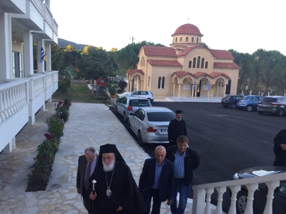 Σήμερα Σάββατο 26 Ὀκτωβρίου 2019 ὁ Σεβασμιώτατος Μητροπολίτης Μαντινείας καί Κυνουρίας κ. κ. Ἀλέξανδρος ἐπ’ εὐκαιρία τοῦ ἐγκαινιασμοῦ τοῦ ἱερού Ναοῦ τοῦ Ὁσίου Δαυίδ τοῦ Γέροντος τοῦ ἐν Εὐβοία, ἐντός τῆς Νέας “Τριανταφυλακείου” πτέρυγας τοῦ Δεκαζείου Γηροκομείου Τριπόλεως, κατέθεσε τά ἱερά Λείψανα στόν παρακείμενο ἐγκαινιασμένο Ἱερό Ναό Ἁγίου Νικολάου καί χοροστάτησε στήν ἀκολουθία τοῦ ἑσπερινοῦ.