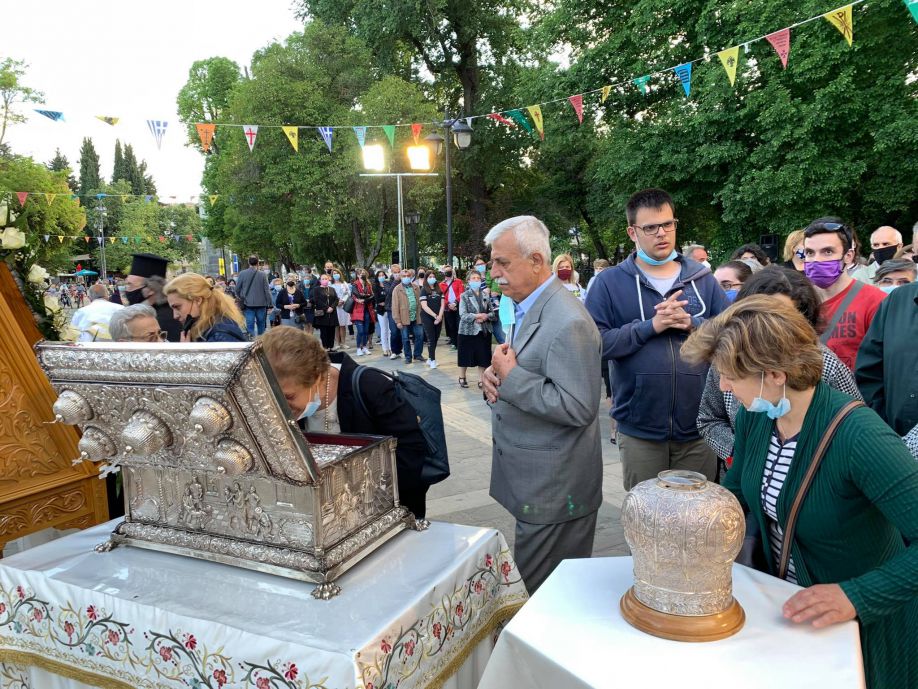 Μέ εἰδικές συνθῆκες τελέστηκε σήμερα Πέμπτη 21/5/2021 ὁ Μέγας Ἀρχιερατικός Ἑσπερινός τῆς μνήμης τῶν Ἁγίων Νεομαρτύρων Δημητρίου καί Παύλου, πολιούχων Τριπόλεως. Λόγῳ τῶν περιοριστικῶν μέτρων γιά τήν ἀποτροπή τῆς ἐξαπλώσεως τοῦ μολυσματικοῦ κορωνοϊοῦ, ἡ Ἀκολουθία τοῦ Ἑσπερινοῦ τελέστηκε ἐκτός καί πρό τῶν πυλῶν τοῦ πανηγυρίζοντος Ἱεροῦ Ναοῦ Ἁγίων Νεομαρτύρτων Δημητρίου καί Παύλου καί Προφήτου Ἠλιοῦ Τριπόλεως.