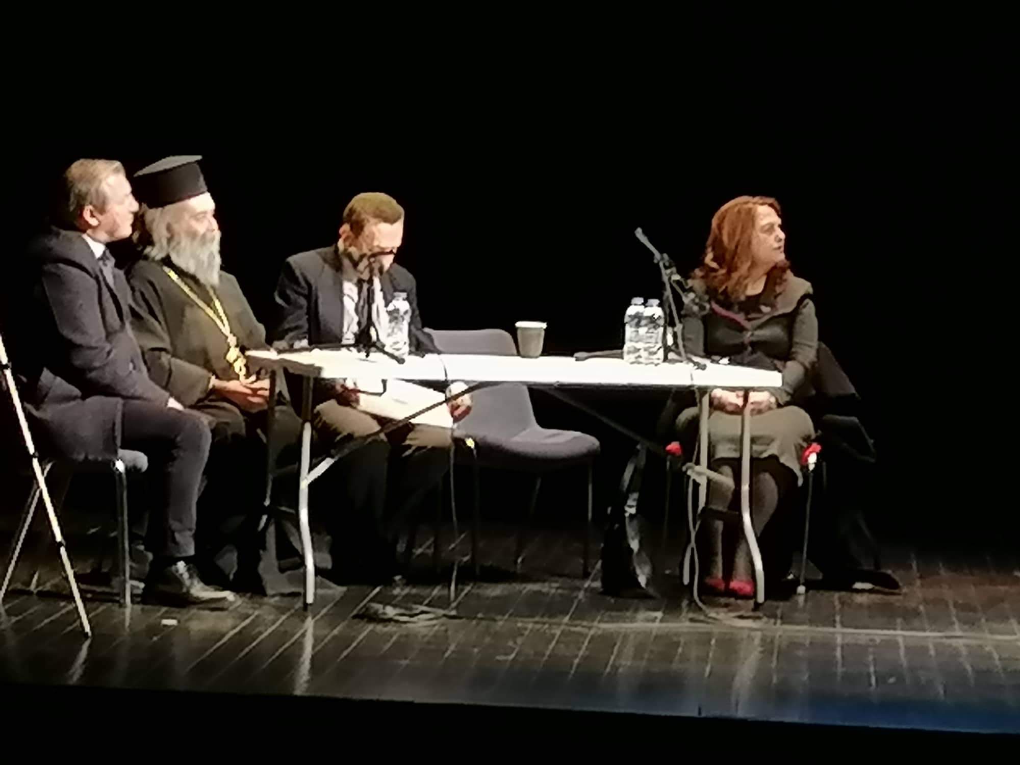 Τήν ἐκδήλωση συνόνισε ἡ κ. Κατερίνα Γ. Καρναβέζου, Φιλόλογος. Ὁμίλησαν γιά τό νέο βιβλίο ἡ κ. Καλλιόπη (Κέλλυ) Ἀ. Μπουρδάρα, Καθηγήτρια τῆς Νομικῆς Σχολῆς τοῦ Πανεπιστημίου Ἀθηνῶν, ὁ κ. Θωμᾶς Ἰωαννίδης, Καθηγητής Πανεπιστημίου, πρώην Πρόεδρος Τμήματος Θεολογίας τοῦ Πανεπιστημίου Ἀθηνῶν, ὁ Πρωτοπρεσβύτερος Σωτήριος Ἀθανασούλιας, Θεολόγος, Φιλόλογος καί ὁ κ. Δημήτρης Μπαλιάτσας, Ἐκδότης, Δρ Βυζαντινῆς Φιλοσοφίας.