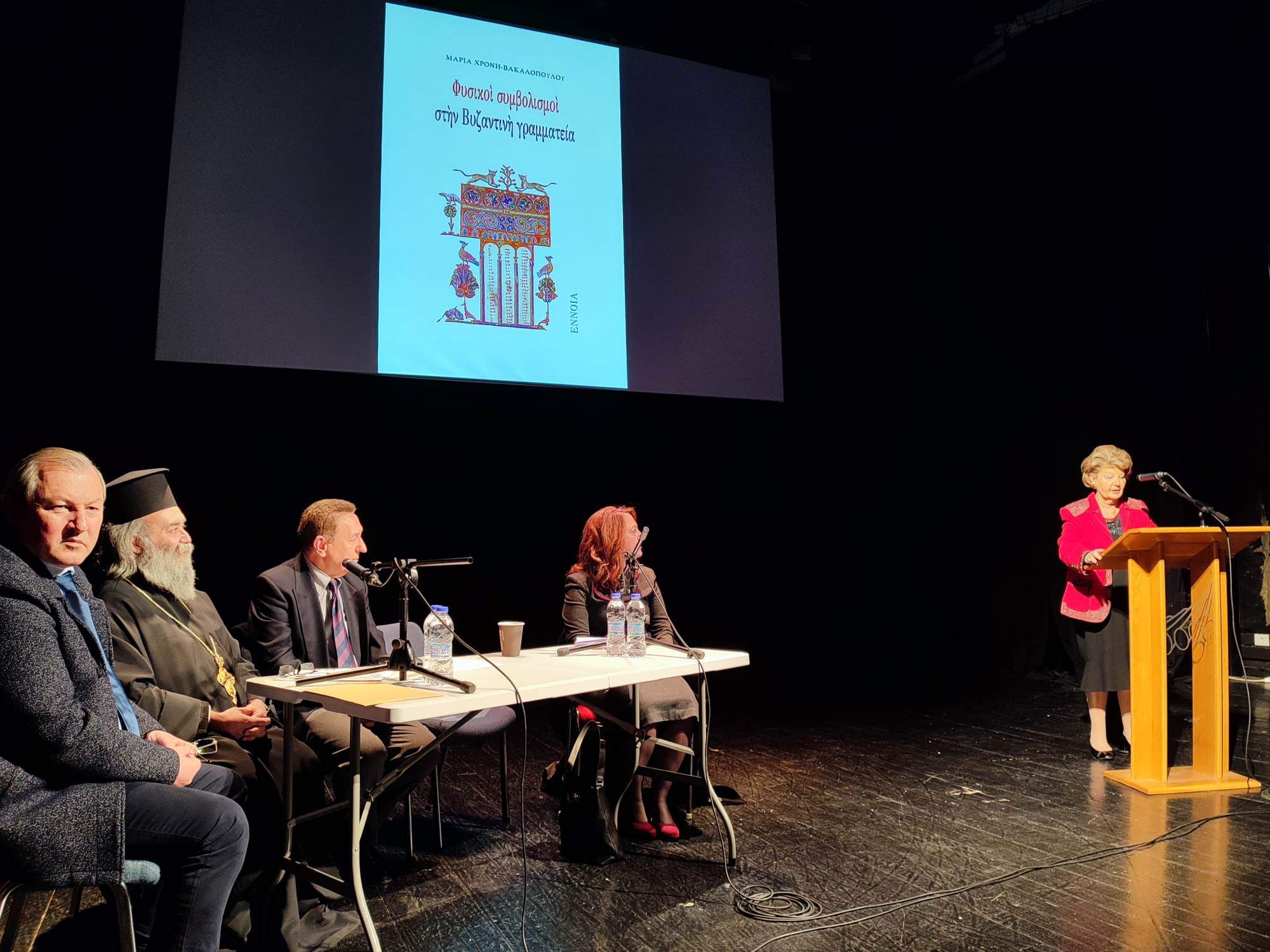 Τήν Κυριακή 12 Φεβρουαρίου 2023, καί ὥρα 11.30 π.μ., στό Μαλλιαροπούλειο Δημοτικό Θέατρο Τριπόλεως σέ ἐκδήλωση πού πραγματοποιήθηκε ὑπό τήν αἰγίδα τῆς Ἱερᾶς Μητροπόλεως Μαντινείας καί Κυνουρίας καί μέ τήν εὐγενική χορηγία τοῦ Δήμου Τριπόλεως, ἔγινε ἡ παρουσίαση τοῦ νέου βιβλίου τῆς κ. Μαρίας Χρόνη – Βακαλοπούλου, Πρεσβυτέρας καί Διδάκτορος τοῦ Πανεπιστημίου Ἀθηνῶν, μέ θέμα: «Φυσικοί συμβολισμοί στήν Βυζαντινή γραμματεία».