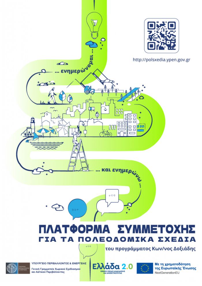Από Τρίτη, 16 Ιουλίου 2024 έχει ενεργοποιηθεί για το κοινό η ψηφιακή «Πλατφόρμα Συμμετοχής» για την κατάθεση σχολίων και απόψεων για τα Τοπικά και Ειδικά Πολεοδομικά Σχέδια (ΤΠΣ και ΕΠΣ) του Προγράμματος Πολεοδομικής Μεταρρύθμισης «Κωνσταντίνος Δοξιάδης» του Υπουργείου Περιβάλλοντος και Ενέργειας.