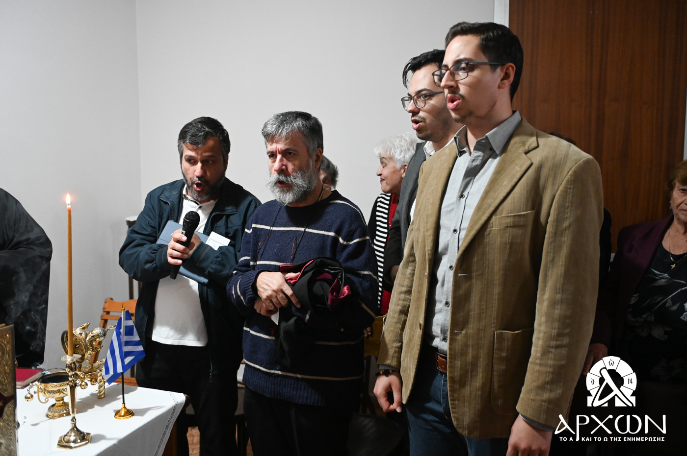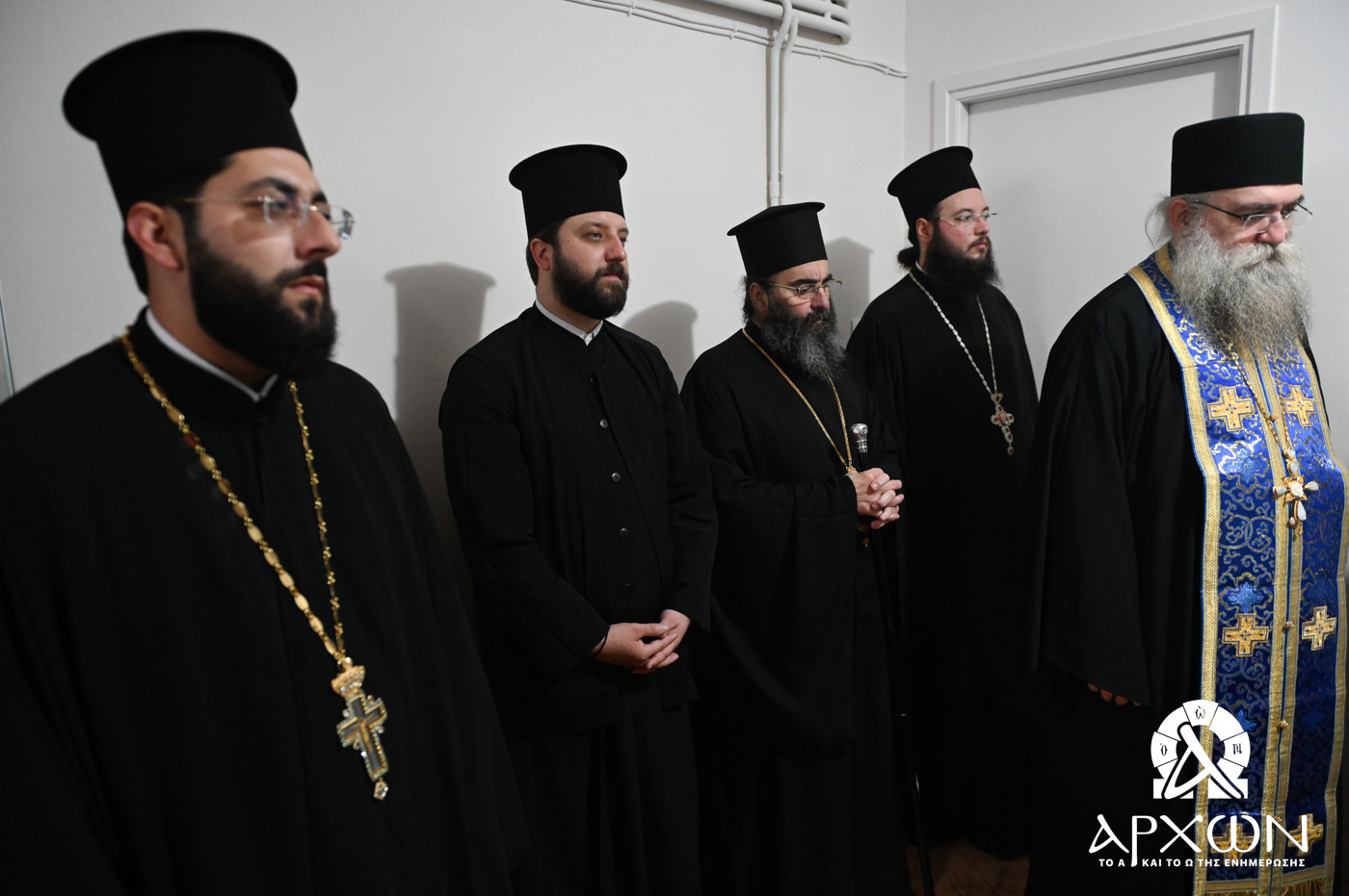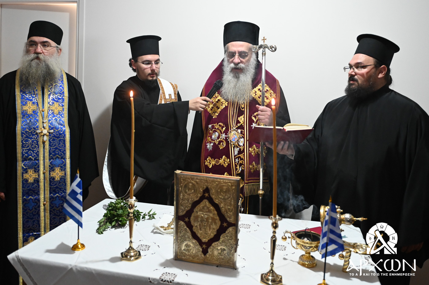 Εν συνεχεία, ο Μητροπολίτης μετέβη σε παρακείμενη αίθουσα του Ιερού Ναού, στην οποία τέλεσε Αγιασμό, αφού προσφάτως περιήλθε ως δωρεά από το Σωματείο “Χριστιανική Εστία” στην ενορία.
