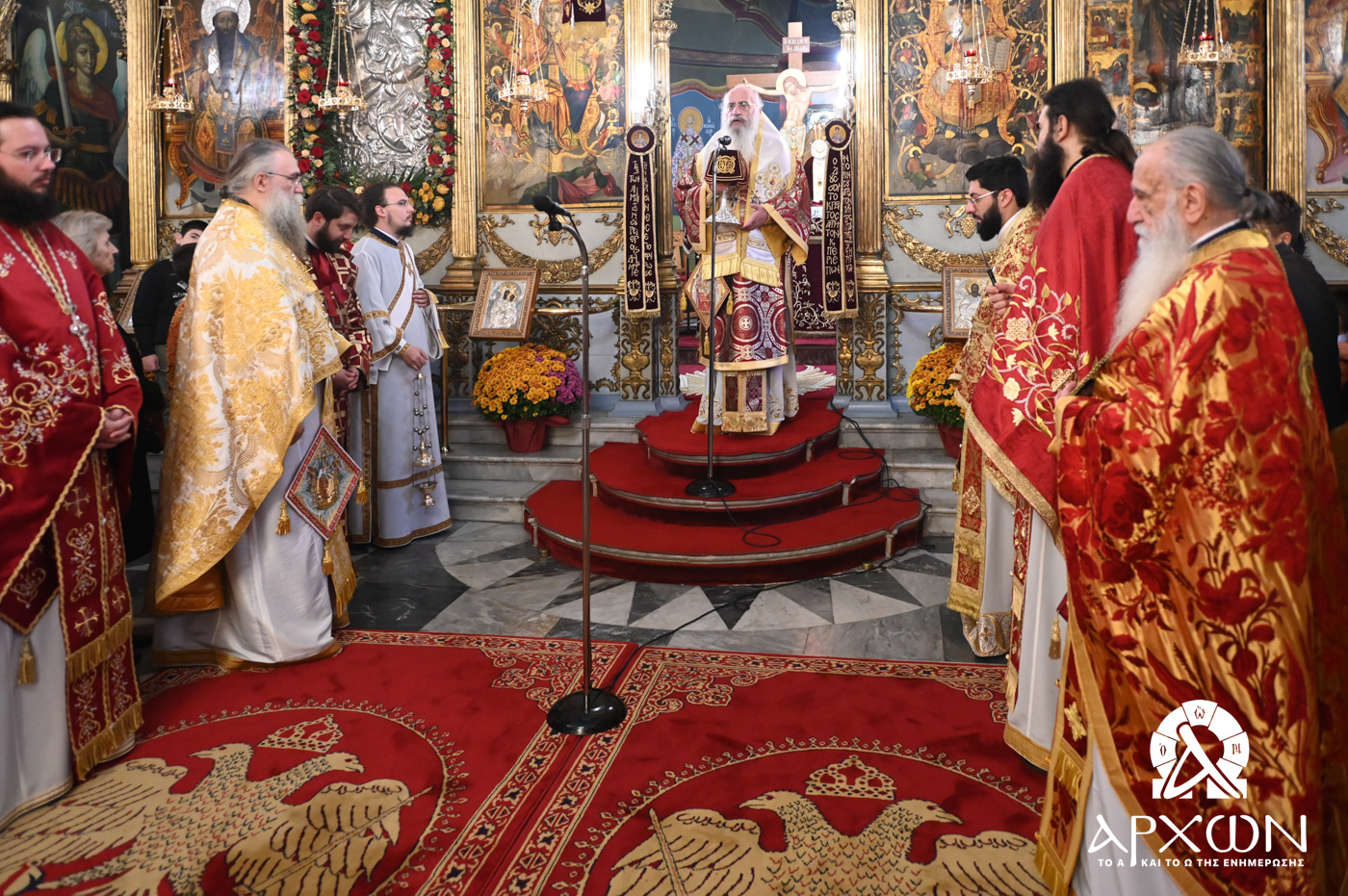 Τον θείο λόγο κήρυξε ο Καθηγούμενος της Ιεράς Μονής Εσφιγμένου, Πανοσιολ. Αρχιμ. Βαρθολομαίος, ο οποίος αναφέρθηκε στην ακράδαντη πίστη του εορταζομένου Αγίου Δημητρίου, ο οποίος δεν δείλιασε μπροστά στο μαρτύριο να ομολογήσει τον Χριστό. “Ο Άγιος γίνεται παράδειγμα πίστης, ανδρείας και αγάπης στον Θεό”, τόνισε χαρακτηριστικά. Συνάμα, λαμβάνοντας αφορμή από το χωρίο “Τιμή Αγίου, μίμησης Αγίου”, προέτρεψε το εκκλησίασμα να μιμηθεί τον Άγιο. “Πρέπει όλοι μας να τολμήσουμε και να ανοίξουμε ορθά τα μάτια μας, ώστε να δούμε την ζωή μας, γεμίζοντας το κενό της ψυχής μας με Χριστό” σημείωσε. Καταλήγοντας, ευχήθηκε η σημερινή ημέρα να μην είναι όπως οι υπόλοιπες, αλλά η ημέρα που θα γεμίσουμε Χριστό.