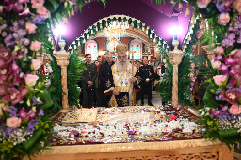 Ο Μητροπολίτης στο κήρυγμα του αναφέρθηκε σε φράση της ομιλίας από την “Εις Άδου κάθοδον”, του Αγίου Επιφανίου Κύπρου, “Τι είναι τούτο; Σιωπή βαθιά σήμερα στη γη. Σιωπή βαθιά και ησυχία βαθιά. Σιωπή βαθιά γιατί ο Βασιλέας κοιμάται. Η γη φοβήθηκε και ησύχασε.”