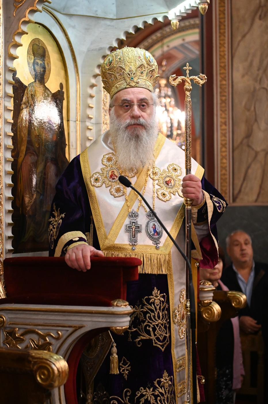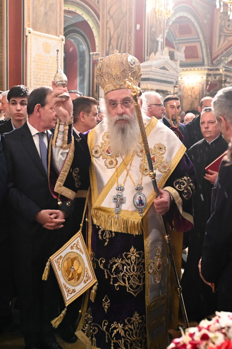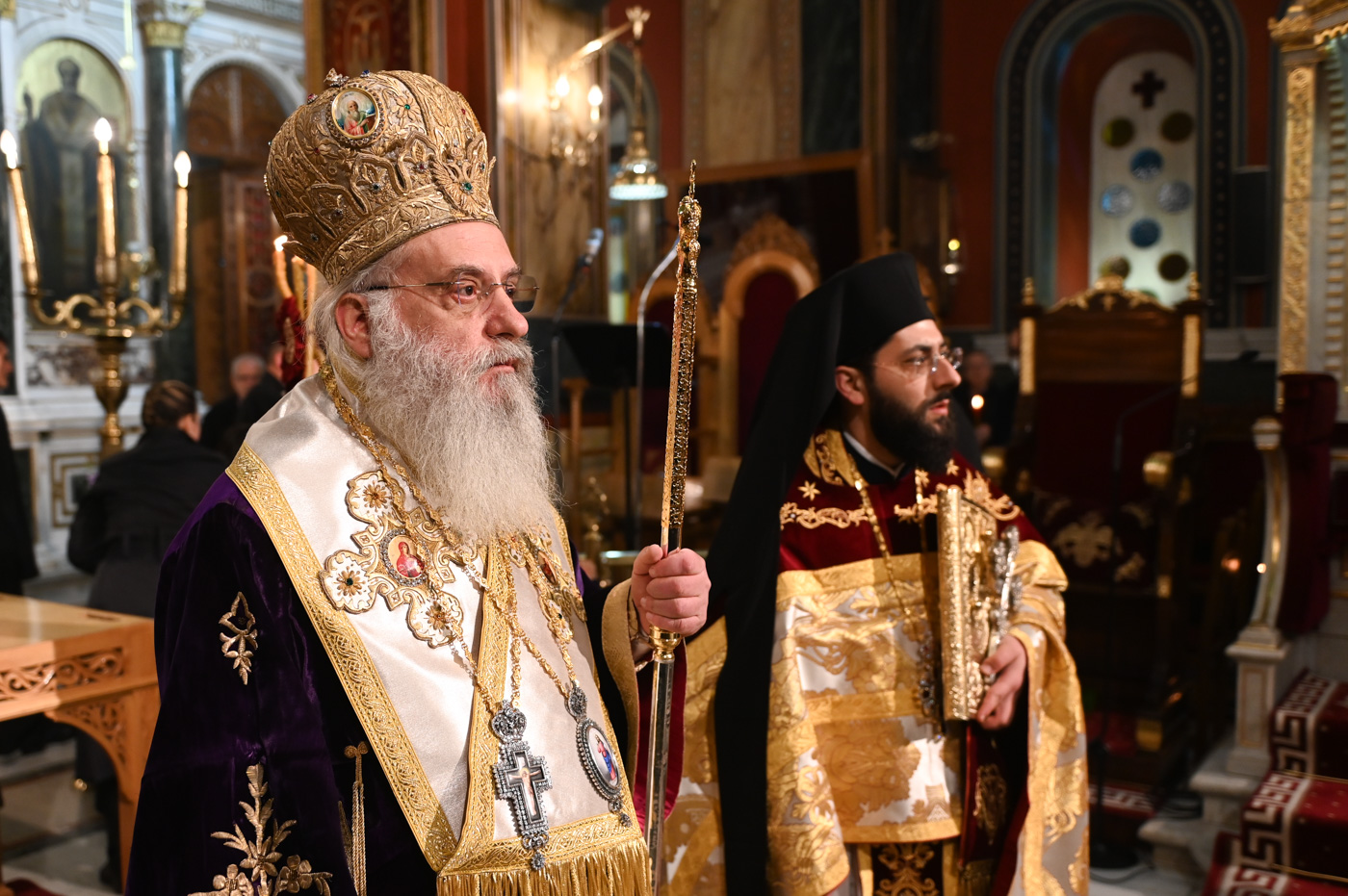 Στην Ακολουθία χοροστάτησε ο Σεβασμιώτατος Μητροπολίτης Μαντινείας και Κυνουρίας κ. Επιφάνιος, πλαισιούμενος από τον Πρωτοσύγκελλο της Μητροπόλεως Πανοσιολ. Αρχιμ. Στέφανο Καππέ και τον Διάκονο π. Αλέξιο Ζαρζάνη.