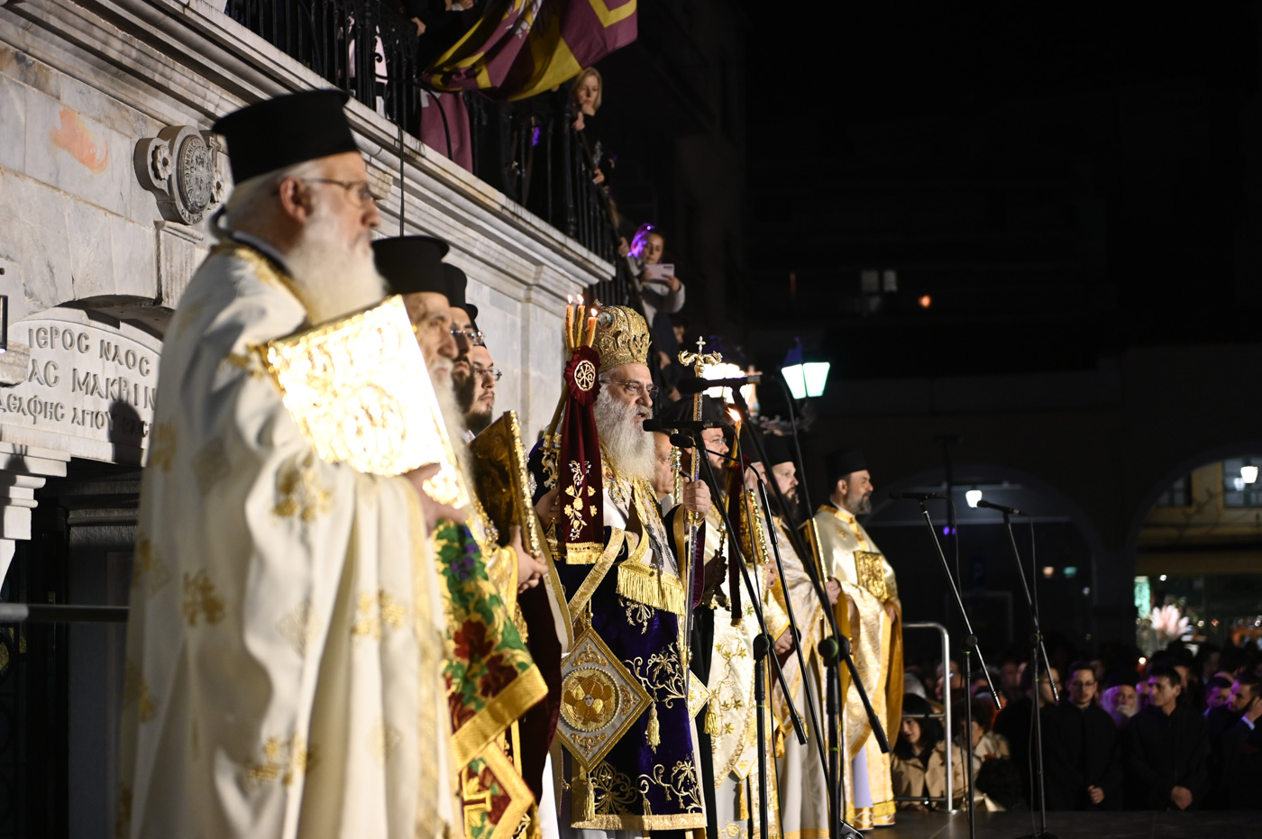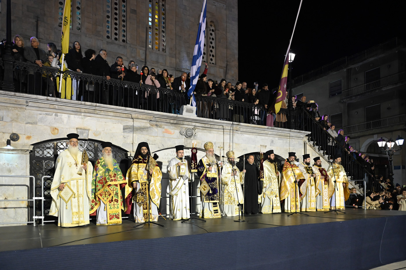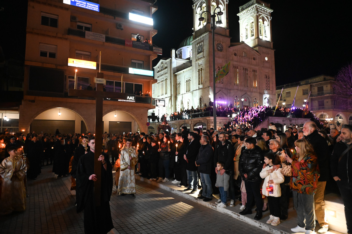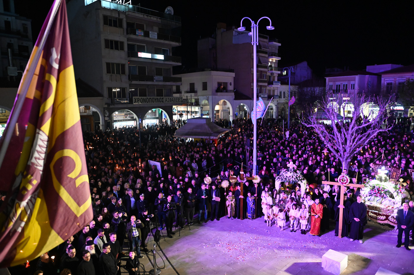 Ακολούθως, τελέσθηκε η περιφορά του Επιταφίου πέριξ του Μητροπολιτικού Ναού, όπου έμπροσθεν αυτού, στην κεντρική πλατεία πραγματοποιήθηκε η συνάντηση των Επιταφίων ενοριών της Τρίπολης. Ο Μητροπολίτης κ. Επιφάνιος, συμπαραστατούμενος από τον Θεοφιλ. Επίσκοπο Τεγέας και από Ιερείς ανέπεμψαν δέηση ενώπιον πλήθους πιστών που κατέκλυσαν την κεντρική πλατεία.
