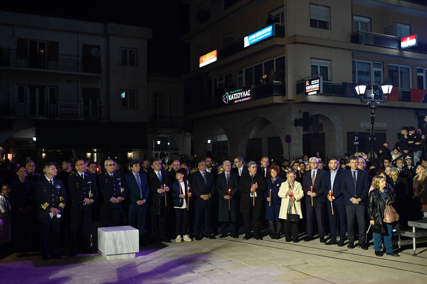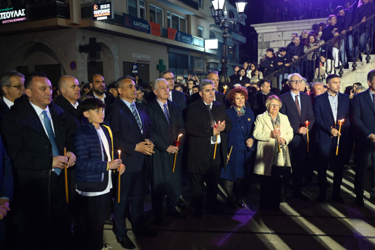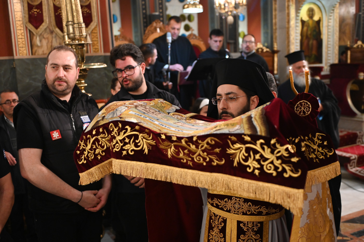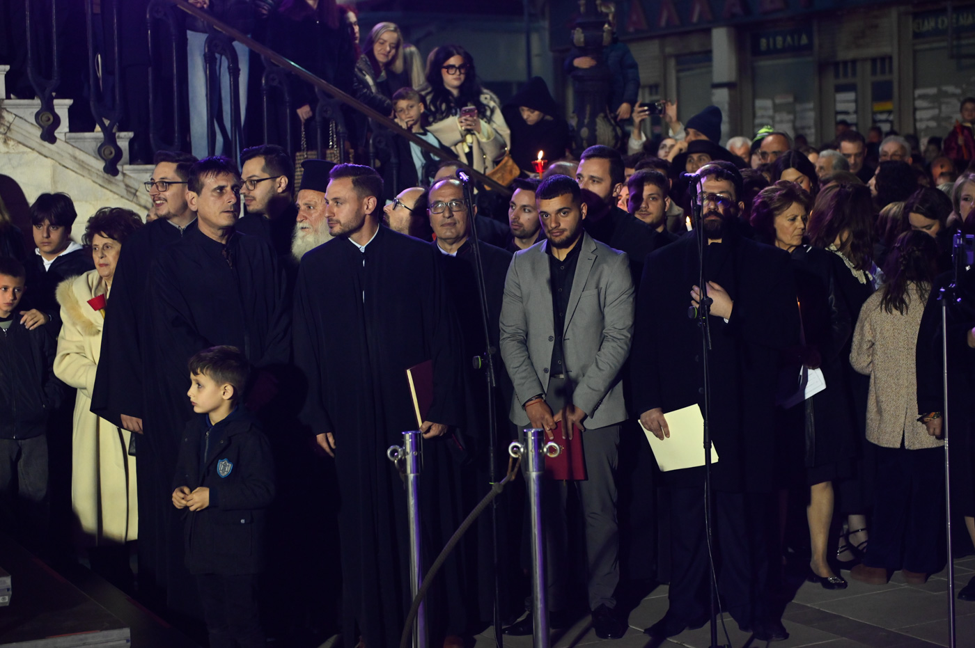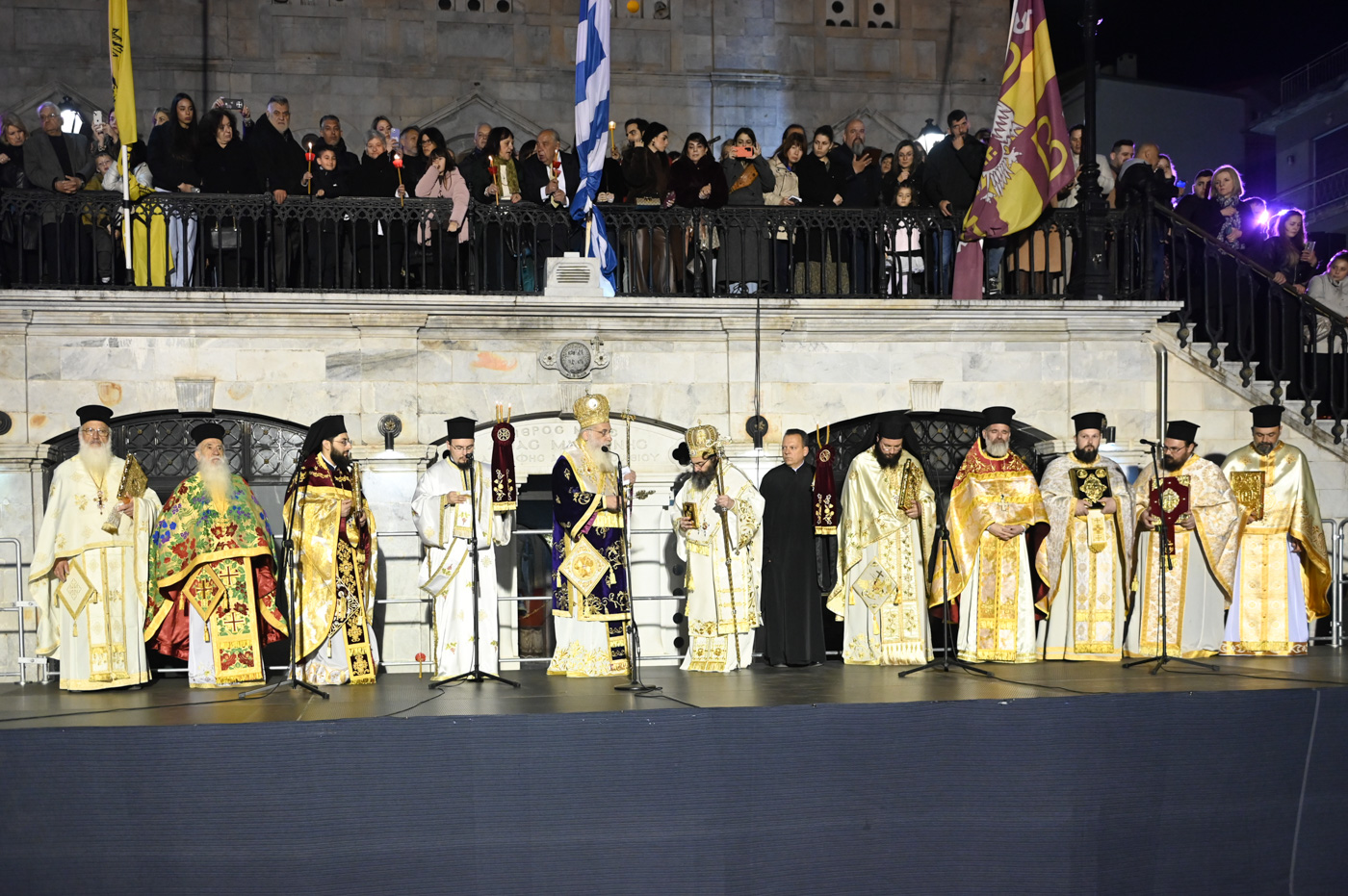 Ακολούθως, τελέσθηκε η περιφορά του Επιταφίου πέριξ του Μητροπολιτικού Ναού, όπου έμπροσθεν αυτού, στην κεντρική πλατεία πραγματοποιήθηκε η συνάντηση των Επιταφίων ενοριών της Τρίπολης. Ο Μητροπολίτης κ. Επιφάνιος, συμπαραστατούμενος από τον Θεοφιλ. Επίσκοπο Τεγέας και από Ιερείς ανέπεμψαν δέηση ενώπιον πλήθους πιστών που κατέκλυσαν την κεντρική πλατεία.