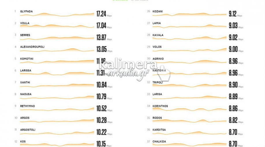 Σχεδόν τη μισή ταχύτητα δηλαδή από τα Νότια προάστια της Αθήνας και πολύ χαμηλότερα από άλλες σχεδόν 30 πόλεις της χώρας!