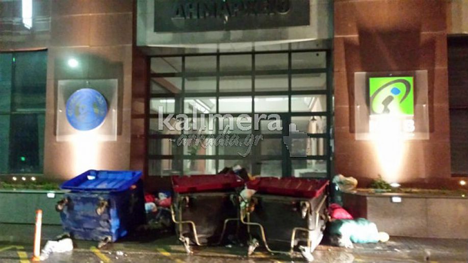 Κάδοι και σκουπίδια πετάχτηκαν από εξαγριωμένο κόσμο στο Δημαρχείο Τρίπολης (εικόνες)