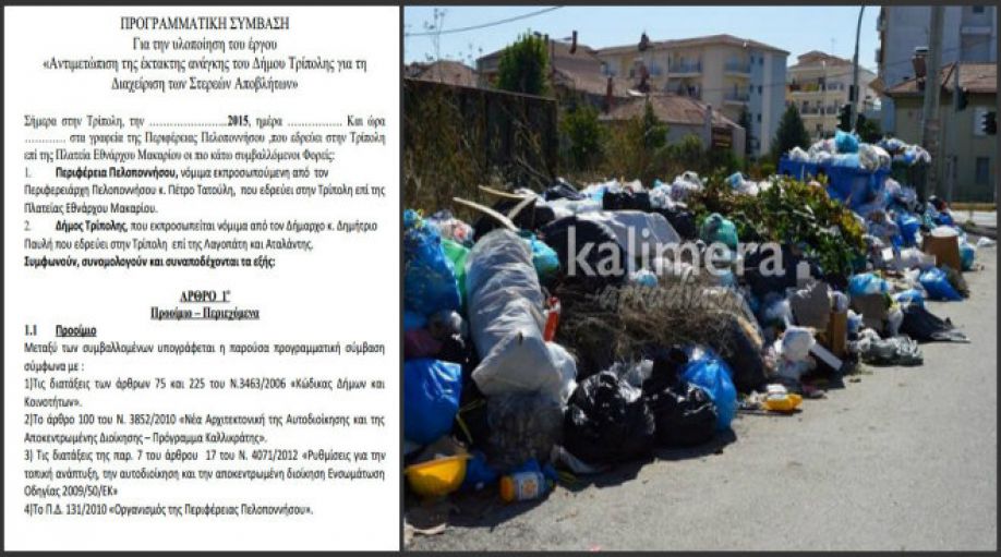 Αυτή είναι η προγραμματική σύμβαση ανάμεσα σε Περιφέρεια και Δήμο για να μαζευτούν τα σκουπίδια!