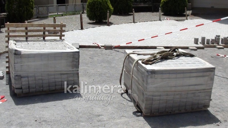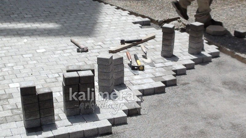 Στο πλαίσιο των εργασιών, τοποθετούνται κυβόλιθοι γύρω από τον Περιστεριώνα και επιπλέον θα μπει φωτισμός.