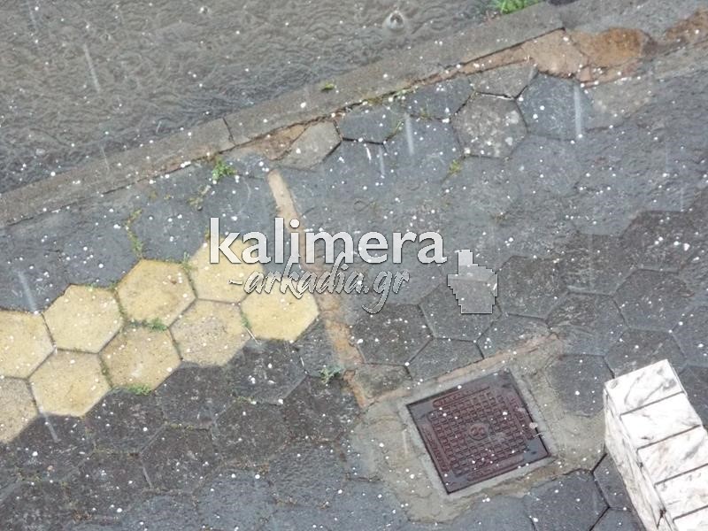 Για αρκετή ώρα κομμάτια χαλαζιού έπεφταν ασταμάτητα σε συνδυασμό με δυνατά μπουμπουνητά αστραπές και βροχή
