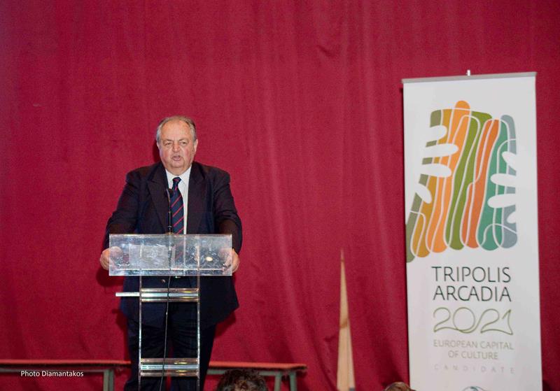 Στη συνέχεια ο Δήμαρχος Τρίπολης Δημήτρης Παυλής αναφέρθηκε στο σημαντικό στρατηγικό στόχο της υποψηφιότητας για την πόλη και την ευρύτερη περιοχή και παρουσίασε το κείμενο της Χάρτας Συνεργασίας για την διεκδίκηση του χρίσματος της Τρίπολης-Αρκαδίας 2021 ως Πολιτιστικής Πρωτεύουσας της Ευρώπης. Ανακήρυξε δε ως Θεσμικό Εταίρο την Διεθνή Αρκαδική Εταιρεία, καθώς και τον ακαδημαϊκό Θεόδωρο Αντωνίου ως Πρεσβευτή της Διεκδίκησης.