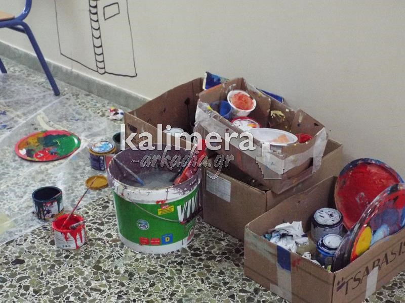 Σε μια επίσκεψη μας στο 4ο Γενικό Λύκειο Τρίπολης βρήκαμε τους μαθητές με τα πινέλα και τα χρώματα στα χεριά, επί τω έργω.