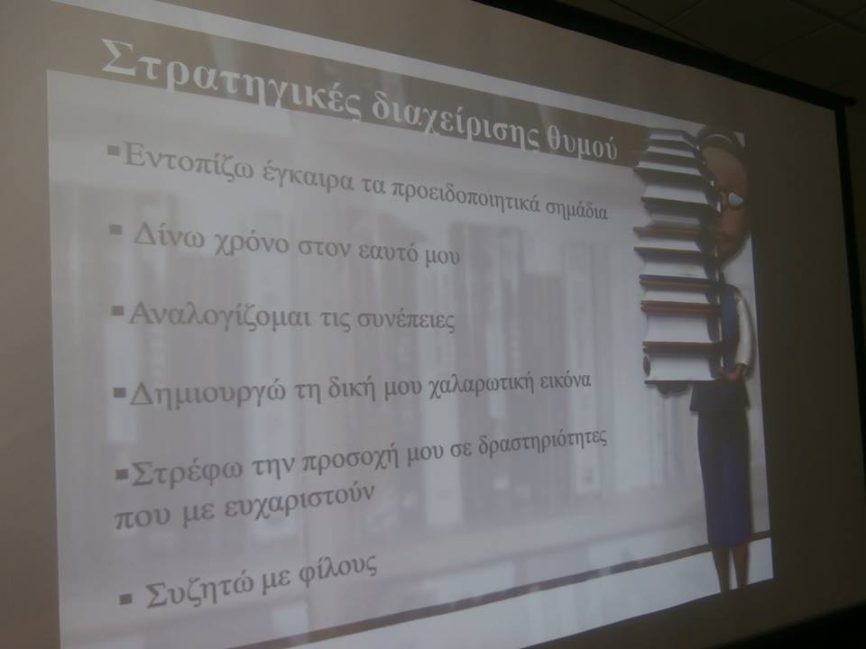Κατά τη διάρκεια του προγράμματος οι συμμετέχοντες πήραν μέρος σε παιχνίδια γνωριμίας, ενεργοποίησης και ευαισθητοποίησης. Με αφορμή την ιστορία του Κώστα Χαραλά «Το κουτί του θυμού» συζήτησαν σχετικά με τις αιτίες, τις συνέπειες του θυμού και τους τρόπους αποτελεσματικής διαχείρισής του. Δραματοποίησαν ιστορίες θυμού και εξοικειώθηκαν με πρακτικές διαχείρισής του, με τεχνικές χαλάρωσης και αποφόρτισης. Τέλος, καλλιέργησαν δεξιότητες διεκδικητικότητας, ώστε να εκφράζουν τις σκέψεις τους με ευθύτητα, ειλικρίνεια και σεβασμό προς τους άλλους, μετατρέποντας το θυμό τους σε παράγοντα επιτυχίας, σε κινητήρια δύναμη για την επίτευξη των στόχων τους.