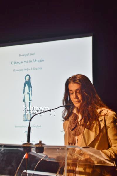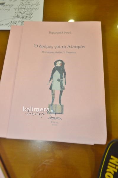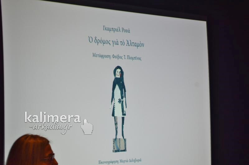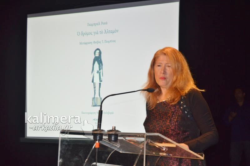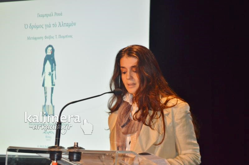 Η Ηθοποιός – Φιλόλογος και Δημοτική Σύμβουλος Τρίπολης - Επικεφαλής της Δημοτικής Κίνησης ¨ΜΑΝΤΙΝΕΙΑΚΗ ΣΥΜΠΟΛΙΤΕΙΑ¨ Αντωνία Γιαννούλη έκανε την παρουσίαση του βιβλίου της Γκαμπριέλ Ρουά με τίτλο ¨ο δρόμος για το Αλταμόν¨.