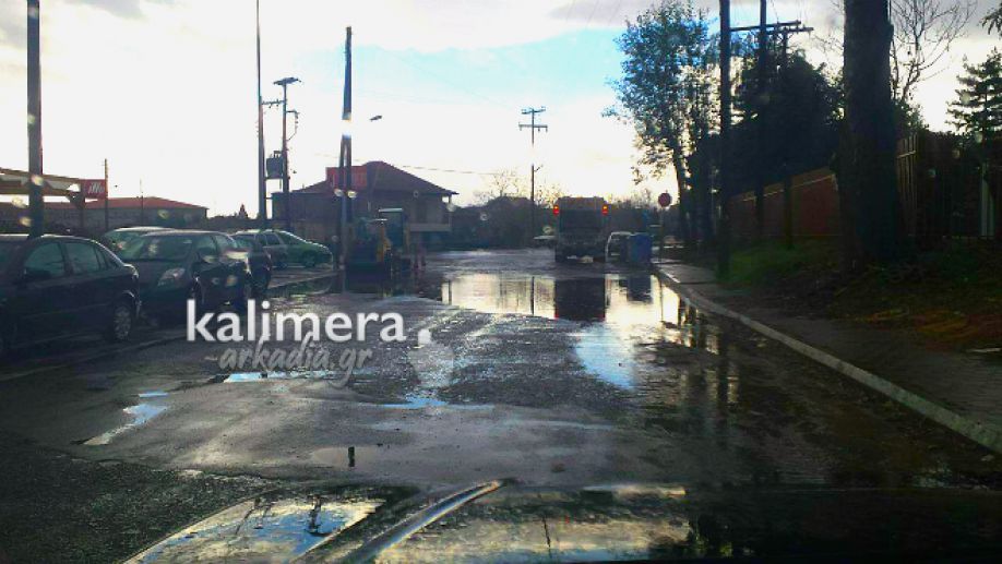 Οι δυνατές βροχές των τελευταίων ωρών είχε ως αποτέλεσμα να δημιουργηθεί ξανά μία μικρή ... λίμνη στο δρόμο έξω από το ΔΑΚ Τρίπολης.