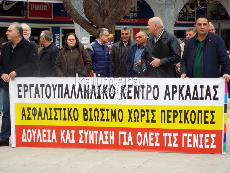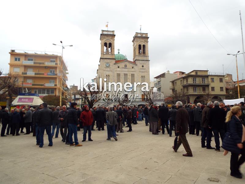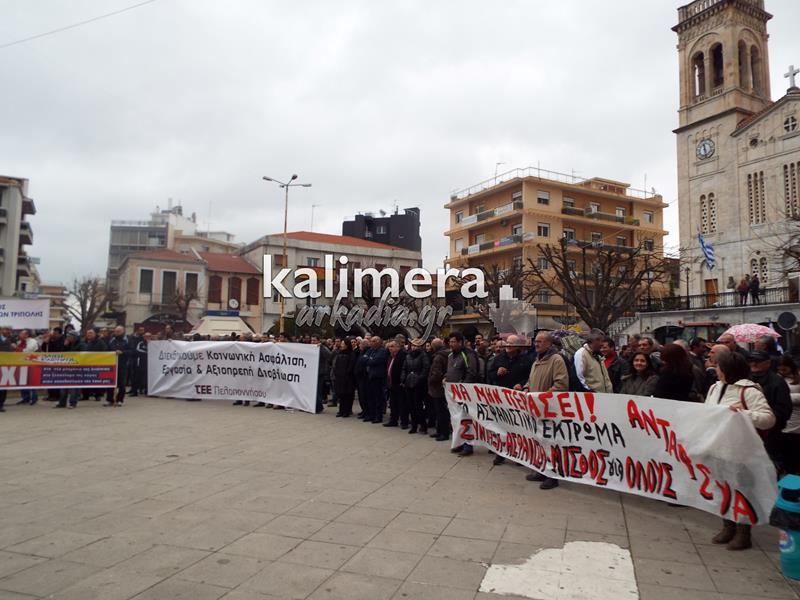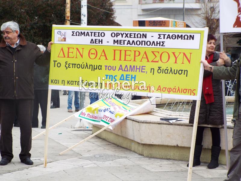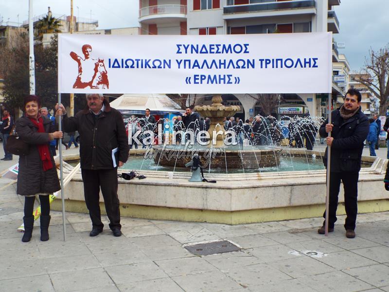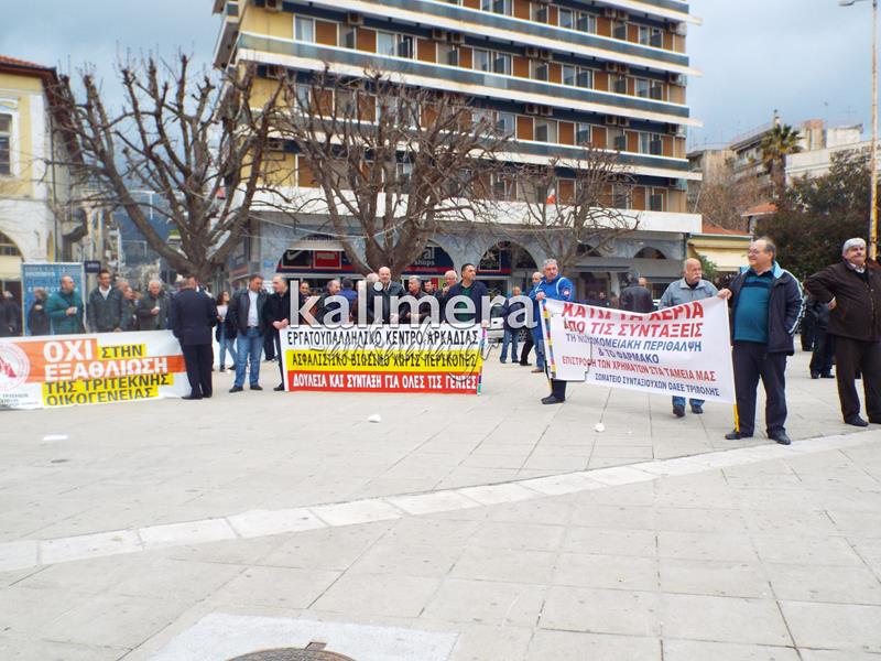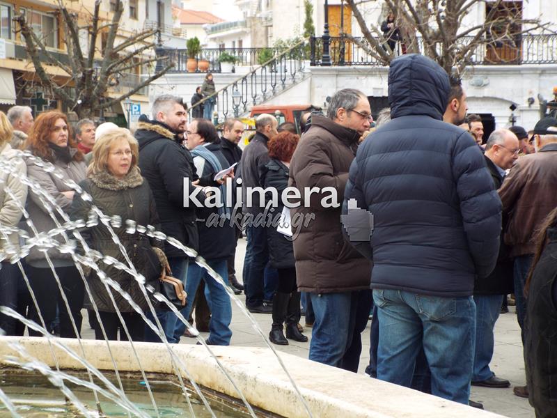 Συγκέντρωση του Εργατικού Κέντρου, της ΑΔΕΔΥ και άλλων φορέων πραγματοποιήθηκε σήμερα, 4 Φεβρουαρίου, στην πλατεία Αγίου Βασιλείου στην Τρίπολη στα πλαίσια της μεγάλης πανελλαδικής απεργίας.