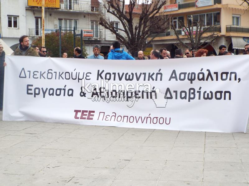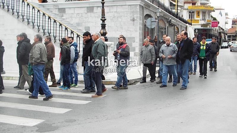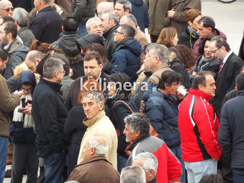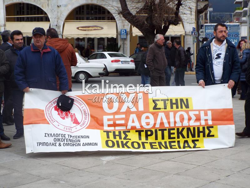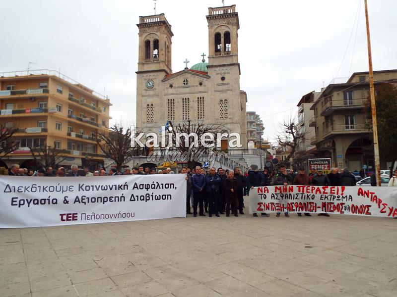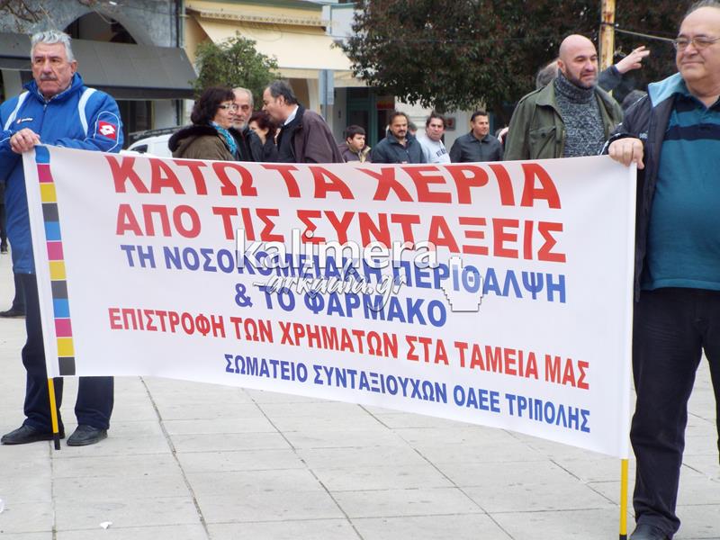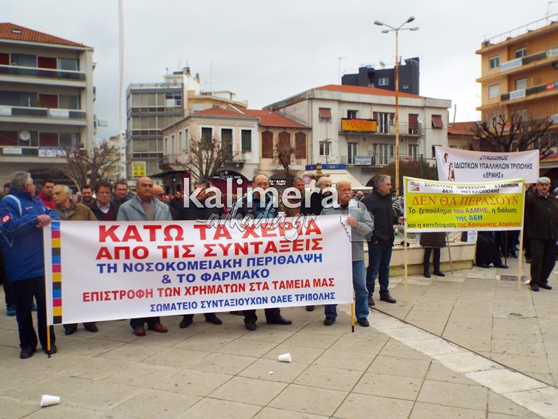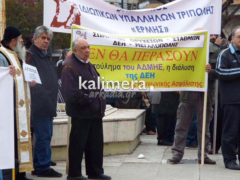 Συγκέντρωση του Εργατικού Κέντρου, της ΑΔΕΔΥ και άλλων φορέων πραγματοποιήθηκε σήμερα, 4 Φεβρουαρίου, στην πλατεία Αγίου Βασιλείου στην Τρίπολη στα πλαίσια της μεγάλης πανελλαδικής απεργίας.