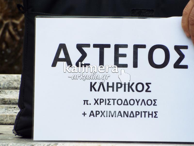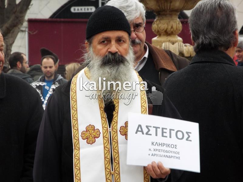Ανάμεσα στους διαδηλωτές της απεργιακής συγκέντρωσης που πραγματοποιήθηκε σήμερα, 4 Φεβρουαρίου, στην Πλατεία Άρεως, στην Τρίπολη ήταν κι ένας κληρικός.