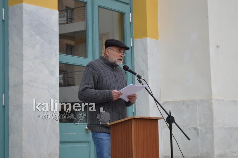 Ομιλητές ήταν ο εκπαιδευτικός από την πολιτική γραμματείας του ΠΑΜΕ Αρκαδίας και δημοτικός σύμβουλος Τρίπολης, Δημήτρης Νικολάου και ο αγρότης - Πρόεδρος του Αγροκτηνοτροφικού Συλλόγου Αρκαδίας, Δημήτρης Κολοβός.