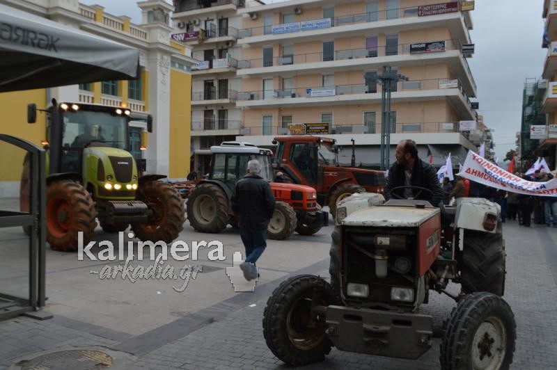 Με πολύ κόσμο και τρακτέρ, έγινε η απεργιακή συγκέντρωση των δυνάμεων του ΠΑΜΕ, στην πλατεία Πετρινού της Τρίπολης.