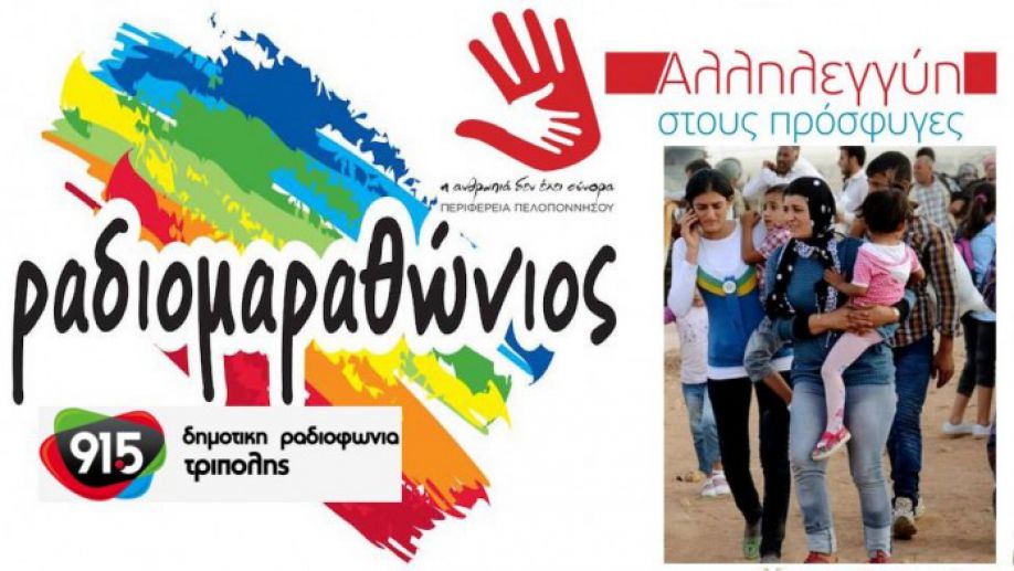Ραδιομαραθώνιο διοργάνωσε την Τετάρτη 6 Απριλίου με τεράστια επιτυχία η Δημοτική Ραδιοφωνία Τρίπολης, στηρίζοντας και προωθώντας την εκστρατεία ανθρωπιάς και αλληλεγγύης της Περιφέρειας Πελοποννήσου για τους πρόσφυγες.