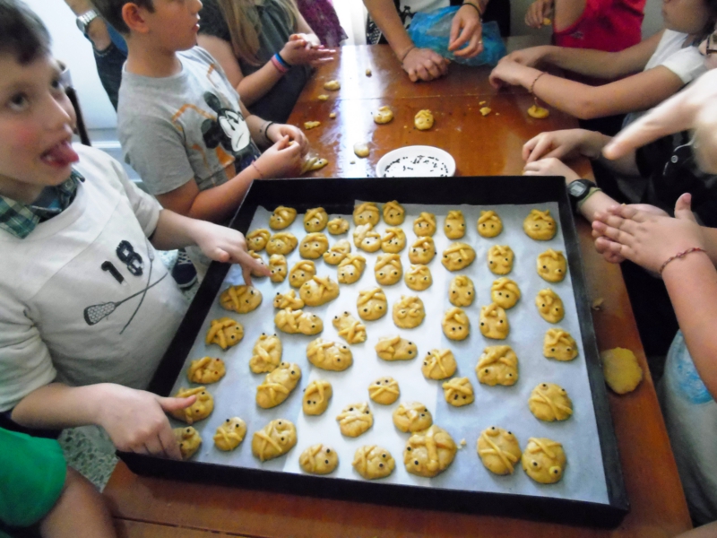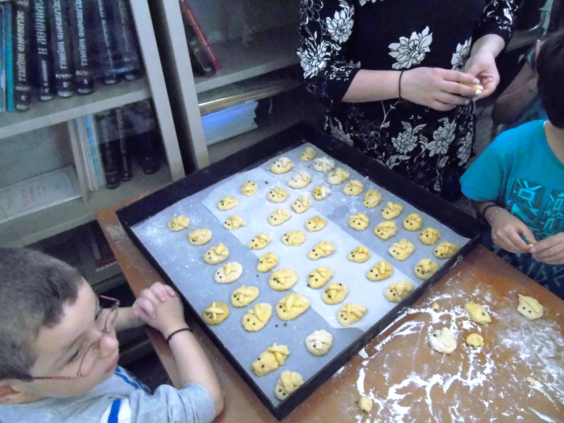 Στό τέλος τοῦ μαθήματος τά παιδιά ἔπλασαν μέ τά χεράκια τούς νηστήσιμα κουλουράκια, τά «Λαζαράκια», γιά χάρη τοῦσαβανωμένου Λάζαρου, τά ὁποῖα θά προσφέρουν ἁπλόχερα τό Σάββατο τοῦ Λαζάρου στό ἐκκλησίασμα τοῦ Ναοῦ μας.