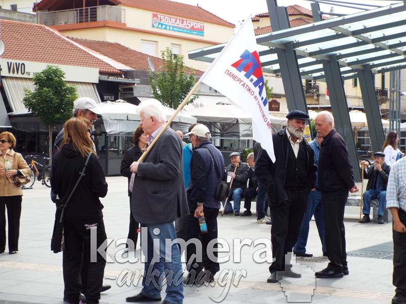 Μια ημέρα μετά την 48ωρη απεργία για τον ασφαλιστικό νόμο, ο οποίος ψηφίζεται σήμερα στην βουλή το Π.Α.Μ.Ε. πραγματοποίησε συγκέντρωση στην Πλατεία Πετρινού, για την Εργατική Πρωτομαγιά.