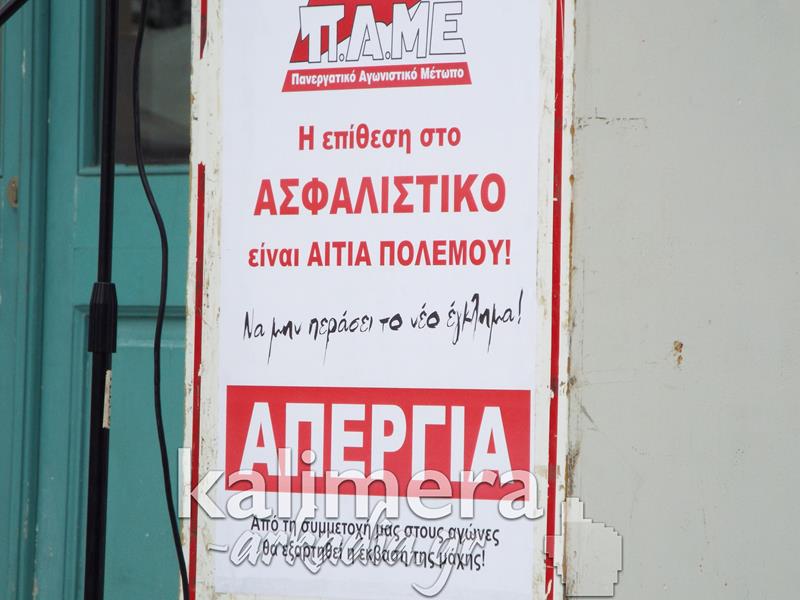 Με σύνθημα «Να μην περάσει το νέο έγκλημα» και πως «η επίθεση στο ασφαλιστικό είναι αιτία πολέμου», κόσμος με σημαίες και πανό συγκεντρώθηκε στην πλατεία.
