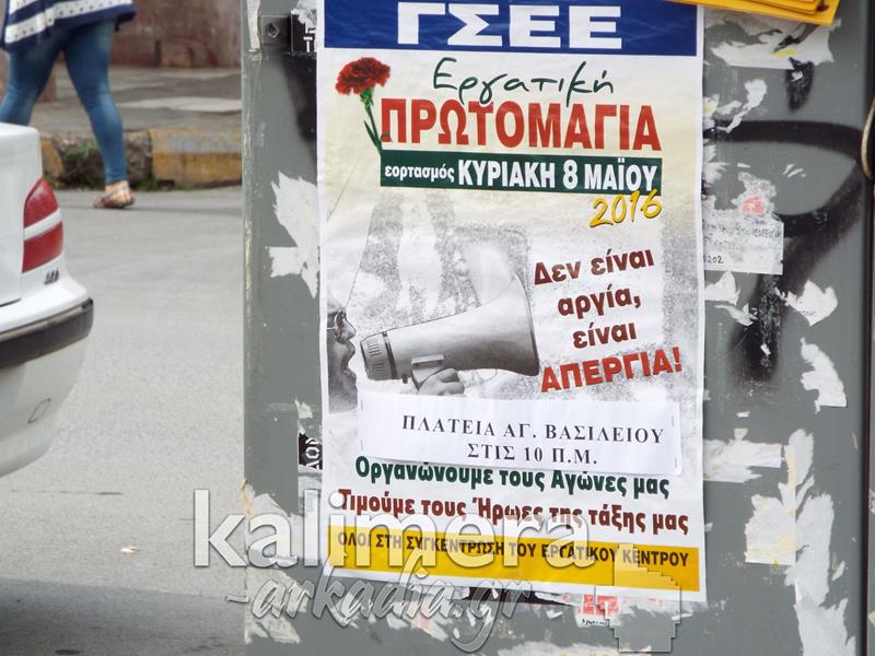Το Εργατικό Κέντρο Αρκαδίας και το Νομαρχιακό τμήμα της ΑΔΕΔΥ, συγκεντρώθηκαν στην πλατεία Αγίου Βασιλείου, για τον εορτασμό της Εργατικής Πρωτομαγιάς.