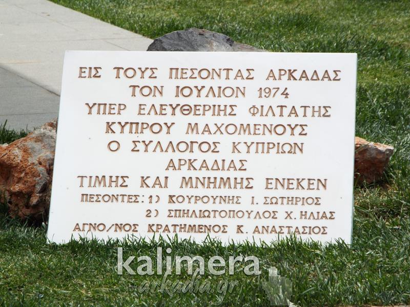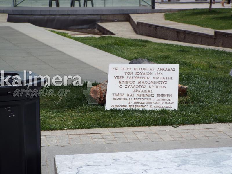 Το θέμα είχε αναδείξει στο παρελθόν το "Καλημέρα Αρκαδία" και σήμερα στην Πλατεία Πετρινού τοποθετήθηκε μια ολοκαίνουργια μαρμάρινη επιγραφή για τους πεσόντες της Κύπρου.