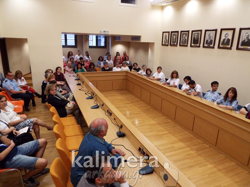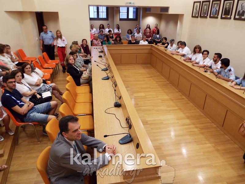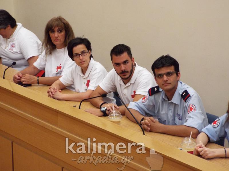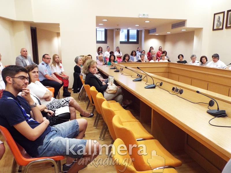 Αμέσως μετά πραγματοποιήθηκε ενημέρωση στους πολίτες, στους εθελοντές του περιφερειακού τμήματος ΕΕΣ Τρίπολης καθώς και στις αρχές της Τρίπολης για το ανθρωπιστικό έργο που συντελεί σήμερα ο Ερυθρός Σταυρός και ειδικότερα για την συμβολή του στην μεταναστευτική – προσφυγική κρίση.