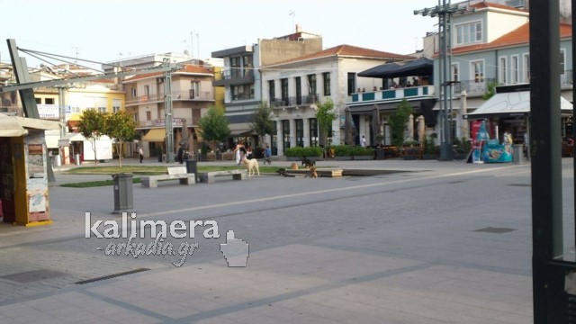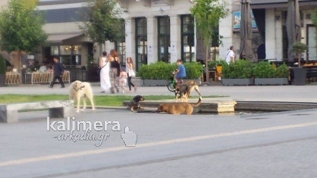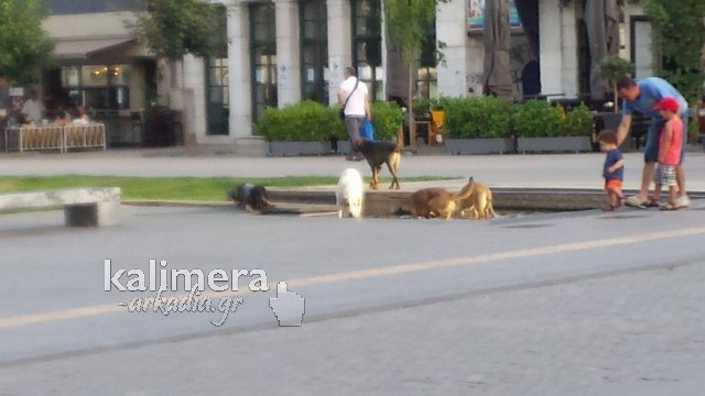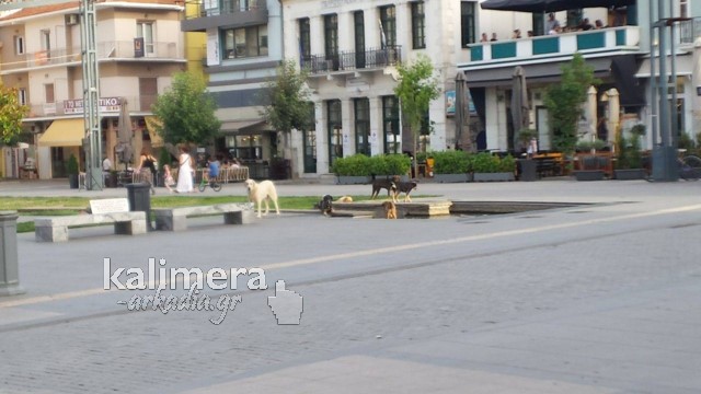 Αφόρητος ο καύσωνας στην πόλη της Τρίπολης, τις τελευταίες μέρες, με τα αδέσποτα της πλατείας Πετρινού να ψάχνουν λίγο ίσκιο για δροσιά και λίγο νερό για να ξεδιψάσουν.