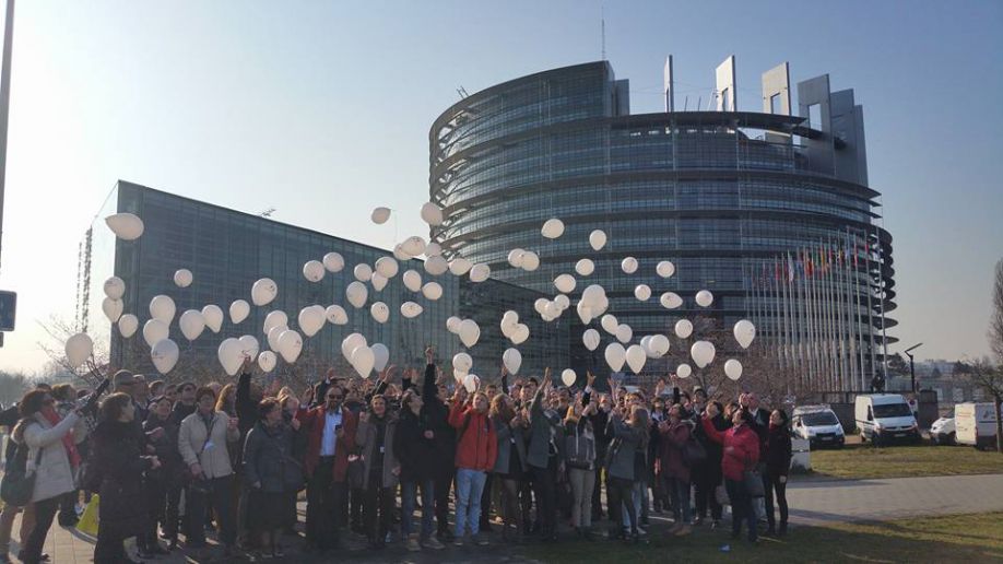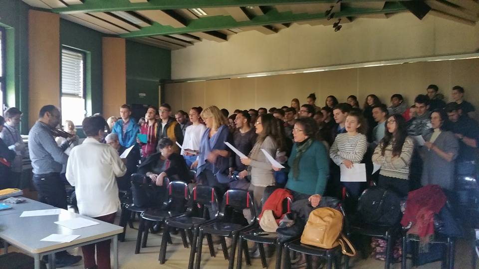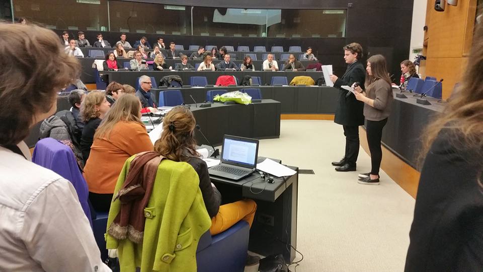 Κορυφαίος σταθμός του ταξιδιού ήταν η παρουσία του Μουσικού Σχολείου μέσα στο Ευρωπαϊκό Κοινοβούλιο του Στρασβούργου όπου εκπρόσωποι των μαθητικών αποστολών διατύπωσαν τους στόχους και τα πορίσματα του προγράμματος ενώπιον της Γαλλίδας ευρωβουλευτού κυρίας Anne Sander που είναι ανάδοχος του προγράμματος. Συγκινητική στιγμή πριν από τις ομιλίες ήταν όταν ακούστηκε χορωδιακά από το σύνολο των αποστολών ο ύμνος του προγράμματος, η σύνθεση του οποίου είχε πραγματοποιηθεί κατά τη συνάντηση των αποστολών όλων των συνεργαζόμενων χωρών εδώ στην Τρίπολη. Το τραγούδι συνόδευσε ζωντανά με το μελωδικό ήχο του βιολιού του ο καθηγητής κ.Μουρλάς. Στο τέλος της παρουσίασης η ελληνική αποστολή ένιωσε μεγάλη ικανοποίηση χάρις στα επαινετικά σχόλια της κ. Sander και των συναδέλφων της.