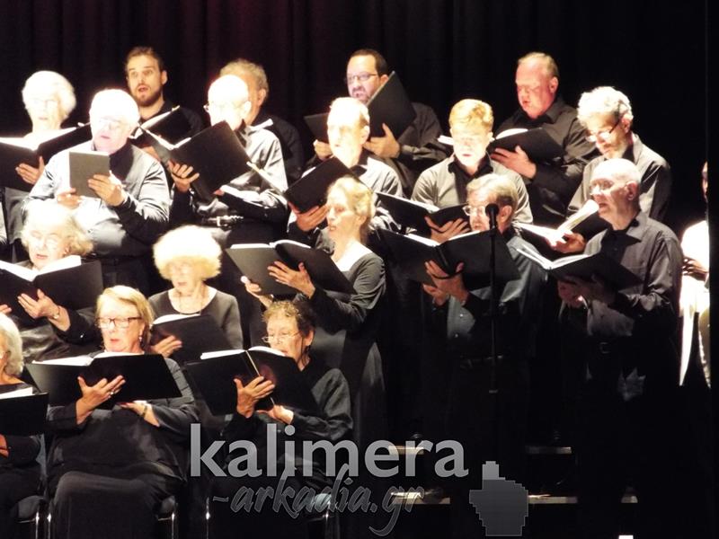 Τραγούδια από όλο τον Κόσμο με τους Malcolm J. Merriweather και Michael Conley στην διεύθυνση της χορωδίας και την Elena Belli να συνοδεύει στο πιάνο μετέφεραν το κοινό της Τρίπολης από την πρωτεύουσα της Αρκαδίας ... νοερά στην Νέα Υόρκη.
