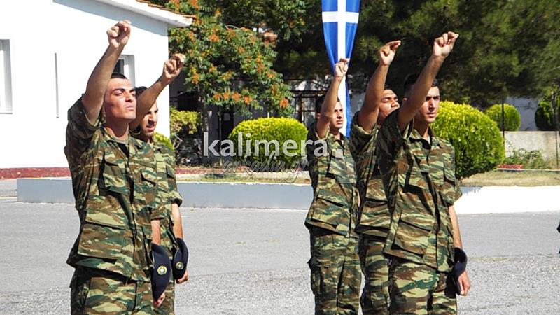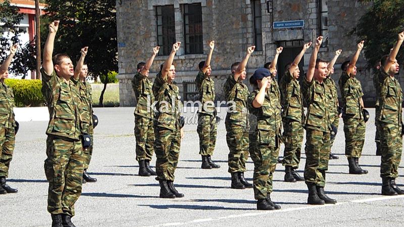 Οι νεοσύλλεκτοι κάτω άπω έναν καταγάλανο ουρανό, βροντοφώναξαν τον όρκο τους, παρουσία φίλων και συγγενών.