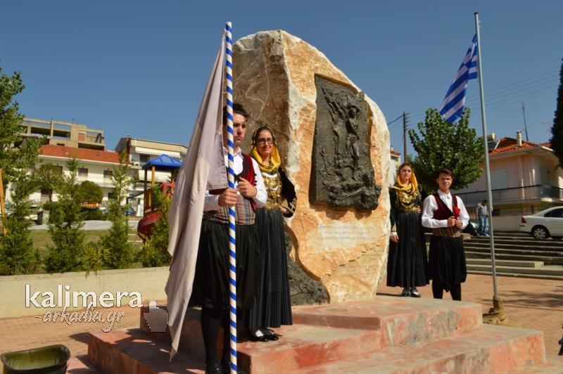 Στη συνέχεια, στον χώρο του μνημείου πάνω στην Πλατεία Φιλικών, τον πανηγυρικό της ημέρας -