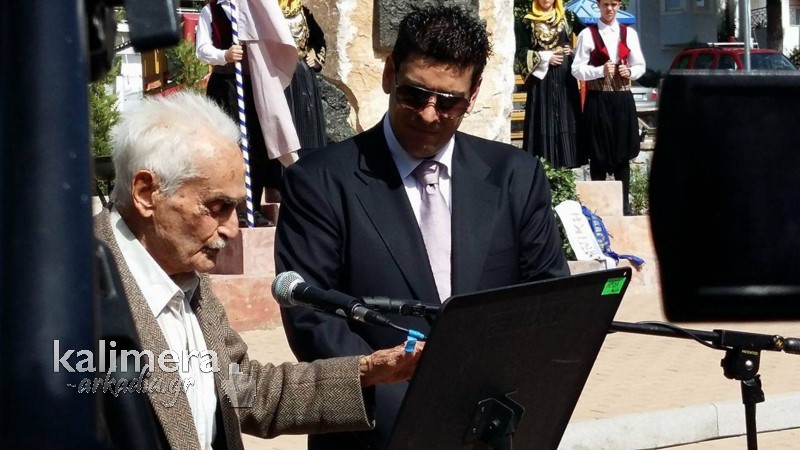 Παρών ήταν φυσικά και ένας από τους τελευταίους πρόσφυγες της Μικράς Ασίας, ο κ. Τάσος Μουκάκης, ο οποίος είπε ότι γεννήθηκε στις 23 Μαρτίου στο δήμο Μπεσίκτας της Κωνσταντινούπολης. "Όταν ήρθαμε εδώ από τη Μικρά Ασία, ο πατέρας μου μού είπε ότι έχει ορκιστεί να μην αποχωρίζεται ποτέ την Ελληνική Σημαία".